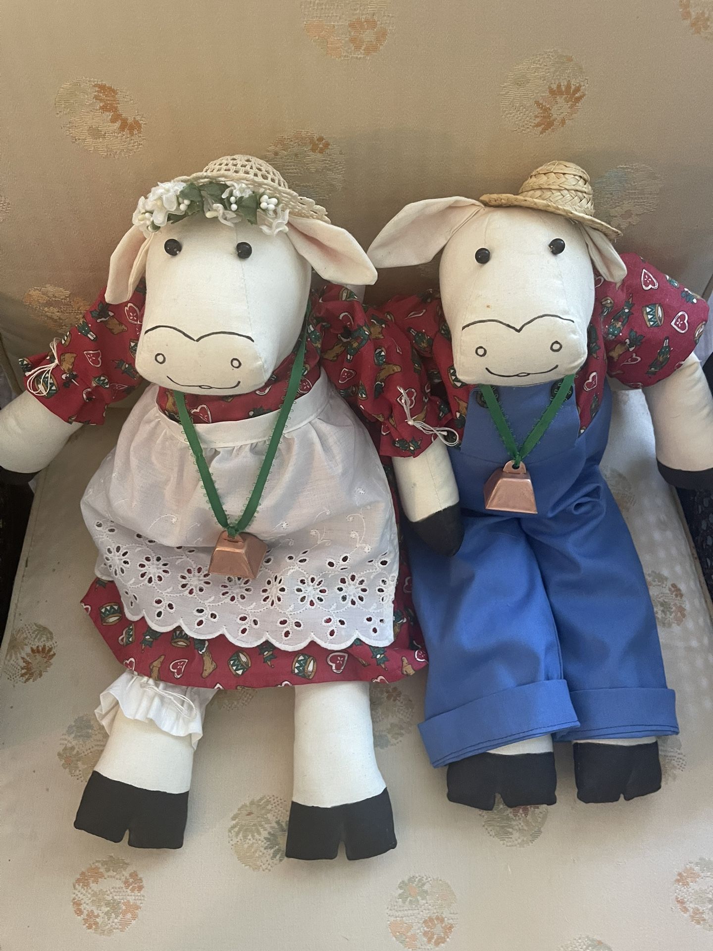 These are fabulous handmade fabric cow art dolls! These measures approx 20” long and are in excellent condition They come from a smoke free home