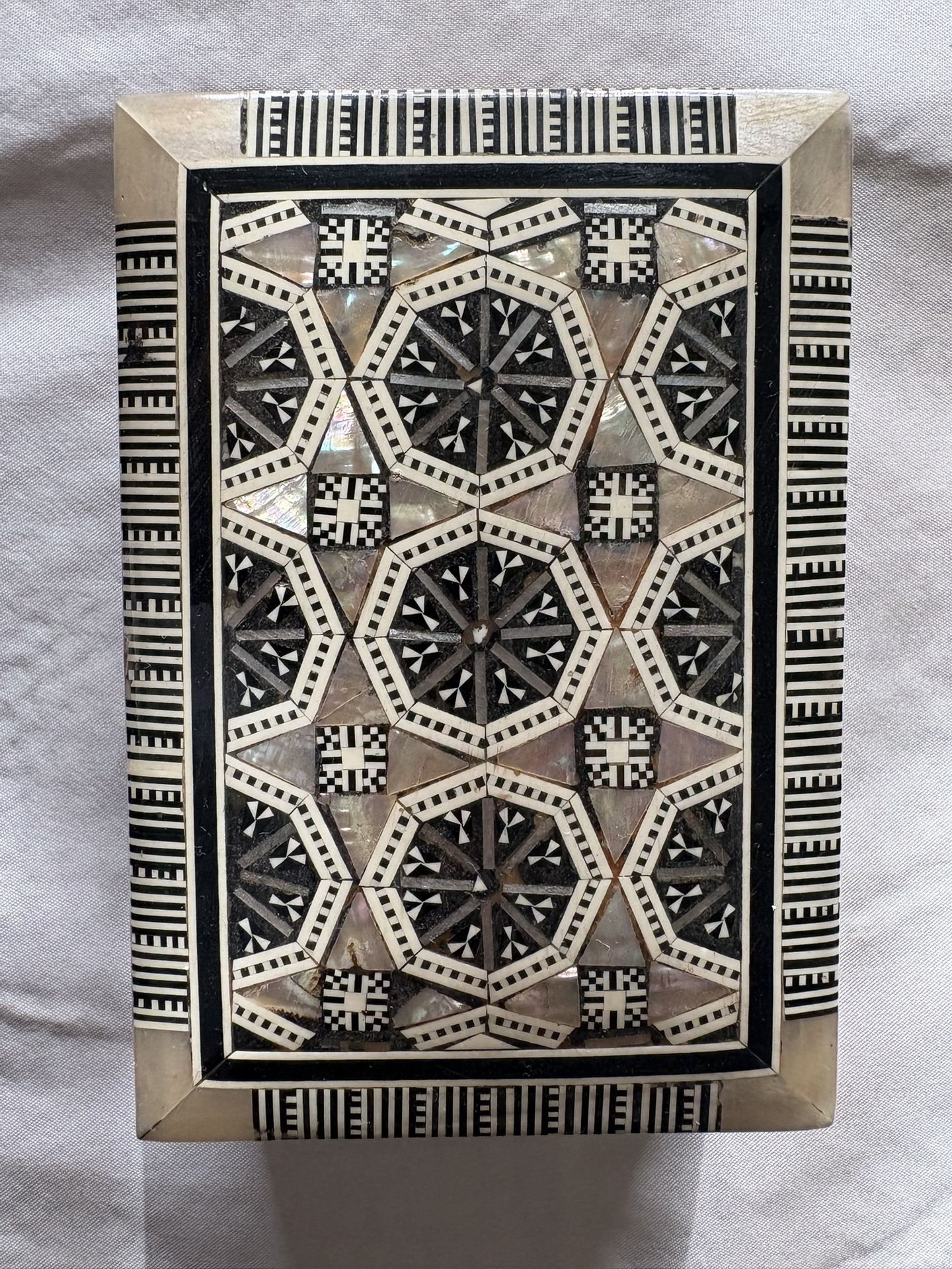 Egyptian wooden jewelry mother of pear Inlay box, the exquisite work on this box it’s rare and hard to find. OBO