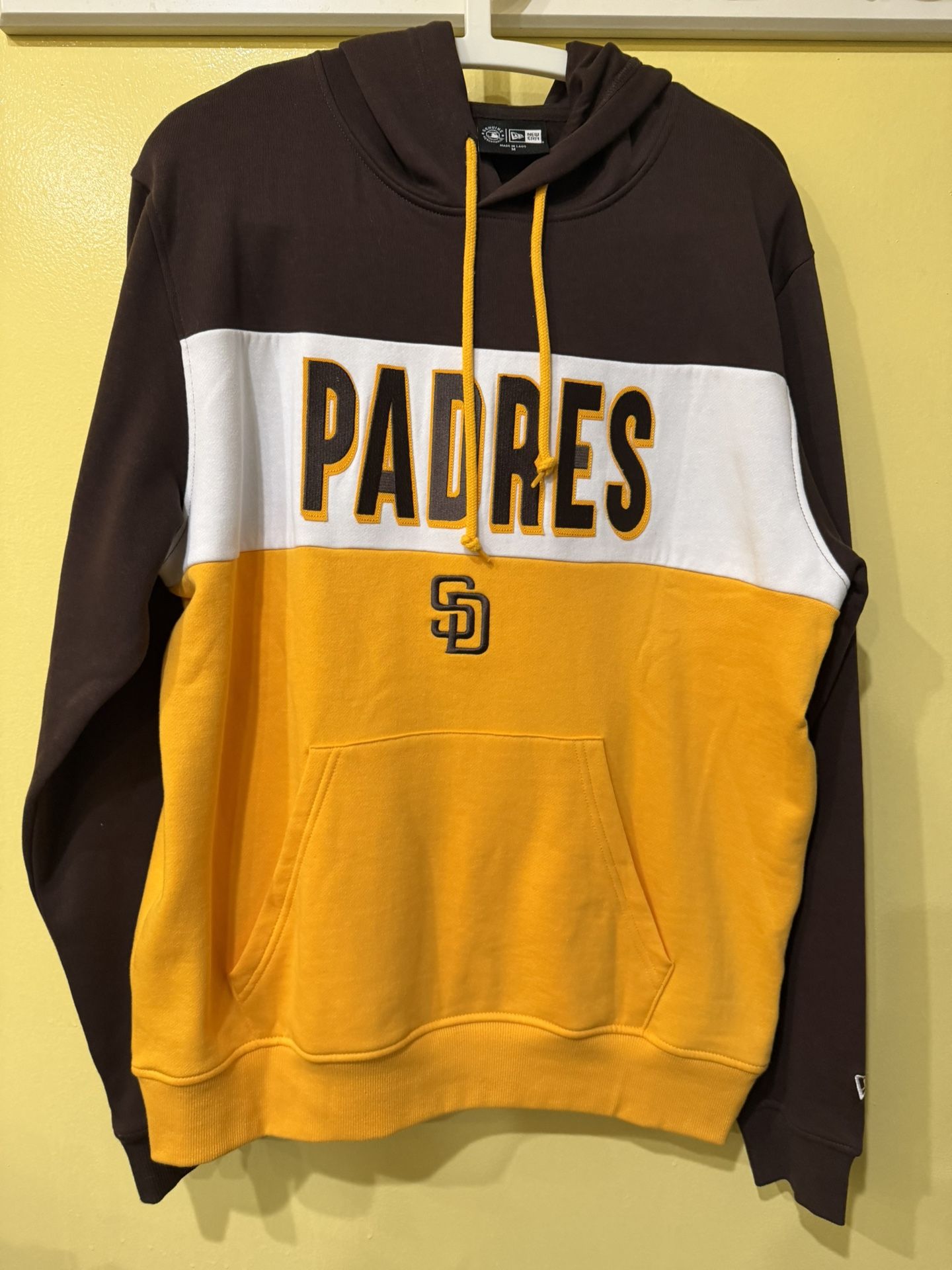 Padres Medium New Era Men’s Sweatshirt for sale for $60. Bought it at the game because it got cold for $100 plus tax but only used once. I didn’t like the design but no choice cause it was the only size for me.