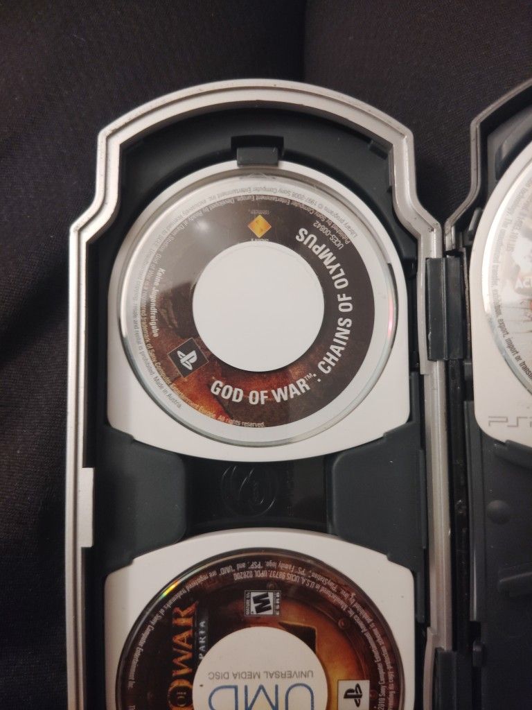 Universal media disc case hard plastic. Comes with 3 games which are: 1.God Of War: Chains of Olympus 2.God Of War: Ghosts of Sparta 3.Marvel Ultimate Alliance Also includes on season of family guy on 2 disks. I would prefer to sell everything together for around $50 but am willing to sell items by themselves if interested just ask and make an offer.