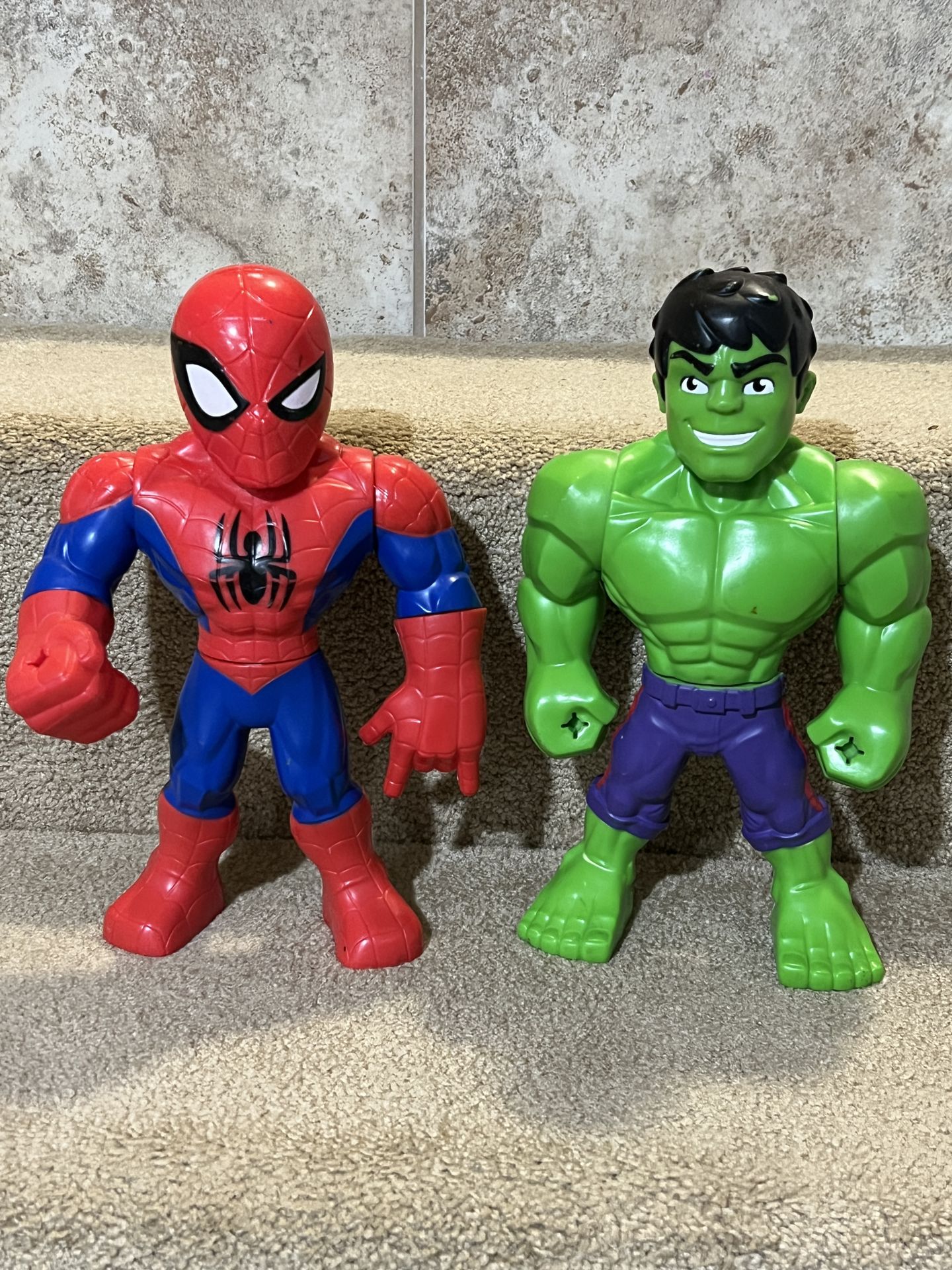 Marvel Spiderman & Hulk 10” tall posable figure set of 2 Spidey & friends
