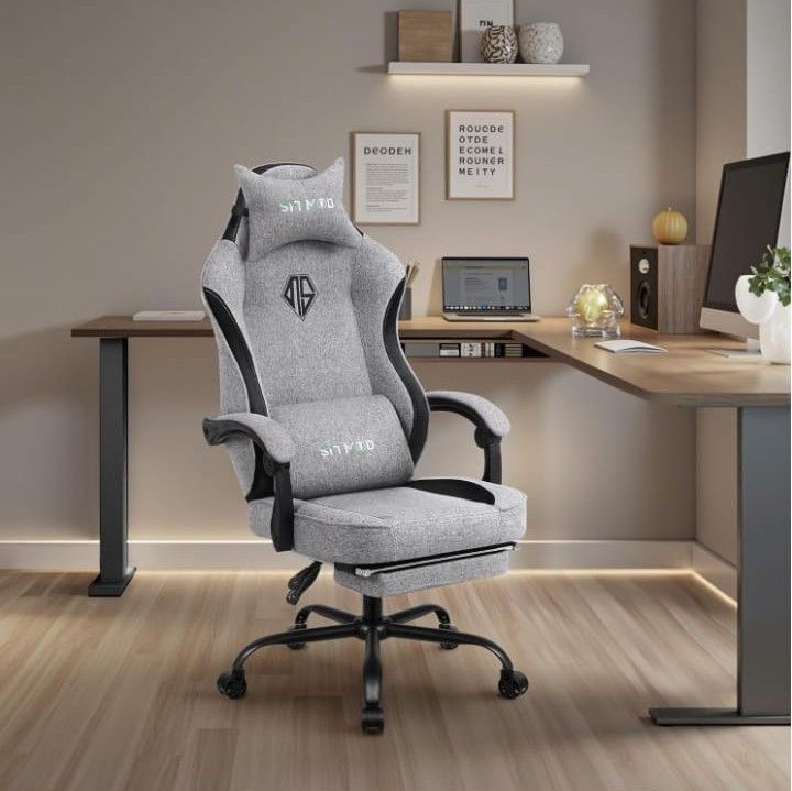 SITMOD Gaming Chair - Ergonomic Video Game Chair with Lumbar Support, Footrest, and Adjustable Height - Grey - Fabric