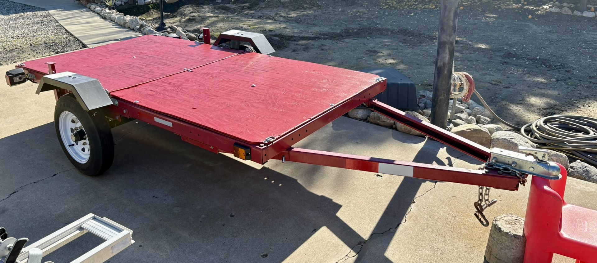 Nice 4x8 trailer Whole trailer has been re-worked New paint New deck New LED lights Folds away for easy storage SPACE SAVER Casters for easy moving when folded Rims and tires like new No paperwork (red trailer) Serious buyers only