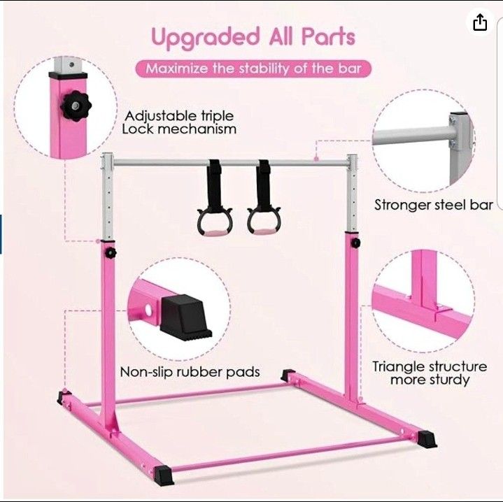 Safly Fun Gymnastics Bar for Kids Ages 3-15 for Home - Steady Steel Construction, Anti-Slip, Easy to Assemble, 3' to 5' Adjustable Height weight capacity 500 lbs