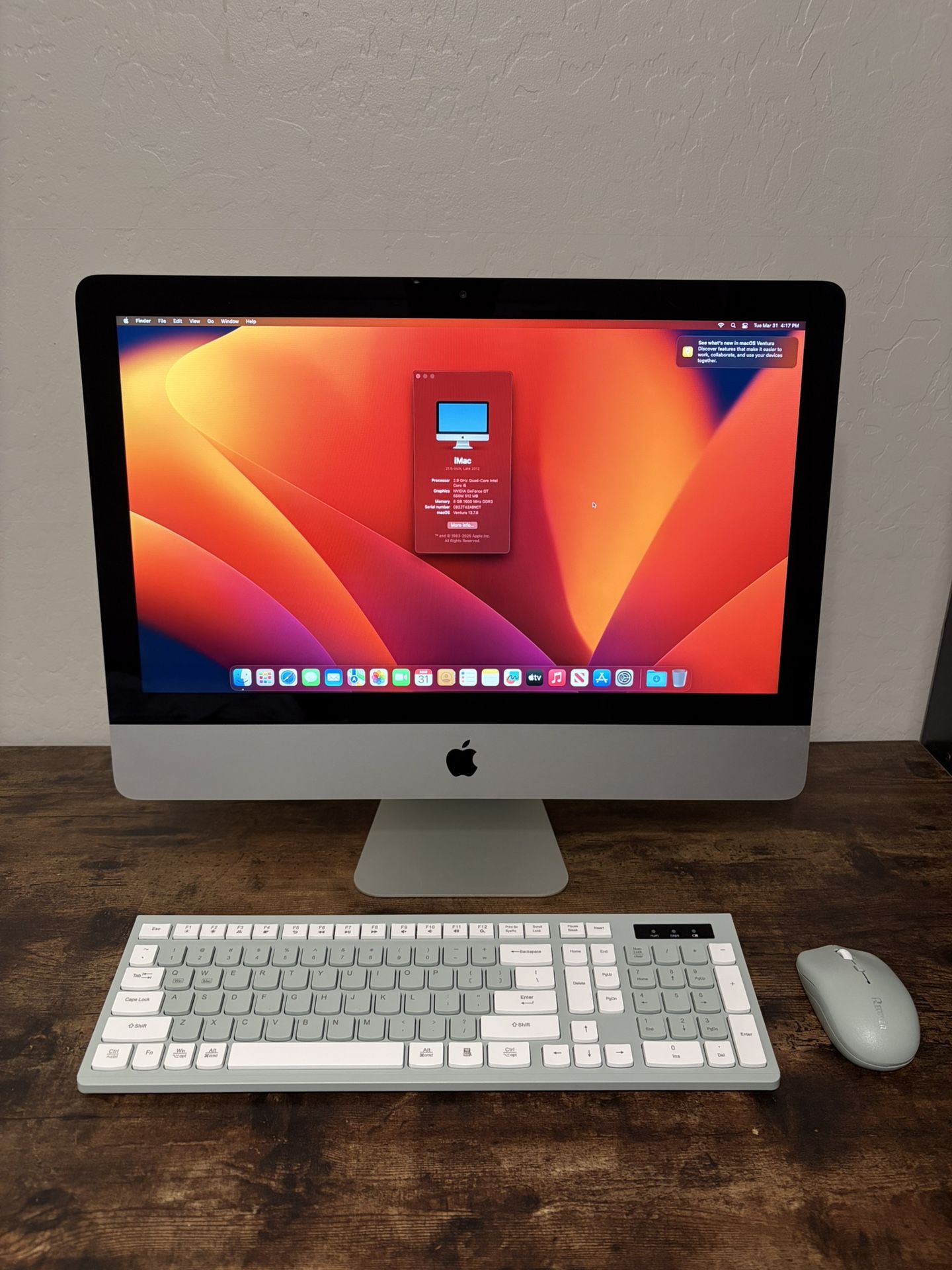 Runs well and has been updated to macOS 13 Ventura for the best user experience supporting the latest features and apps without compromising speed! This is a 2012 model iMac with a Quad Core i5 Processor, 8GB Memory and 1TB HDD. Still a great first computer for students and browsing the web! The screen is in excellent condition, no cracks or scratches! Wireless keyboard and mouse included with the purchase of this Mac!