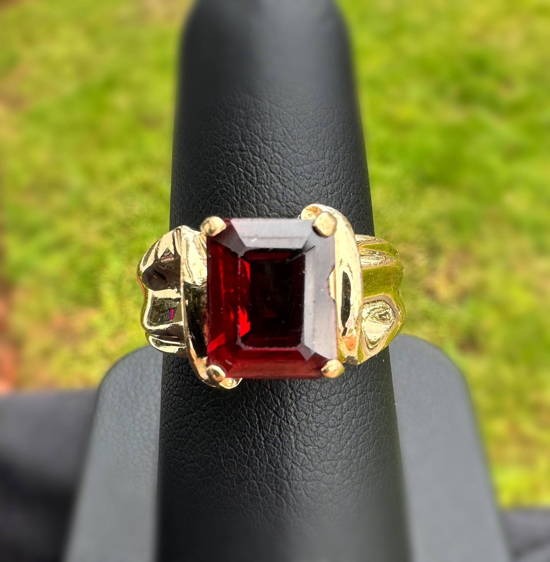 This gorgeous vintage ring with red ruby stone made of 14k solid yellow gold. ring size: 7.25 Total weight: 5.60 grams. The total carat weight of the red ruby stone is approximately 3.00CT. beautiful and absolutely gorgeous. The best choice for you! Perfect gift! β€οΈππ Really unique piece πβοΈ We buy Rolex and Audemars, patek . Do layaway in VIP SHOP Coral Springs π₯ππΈ We buy gold, diamonds, silver, coins π₯³π₯