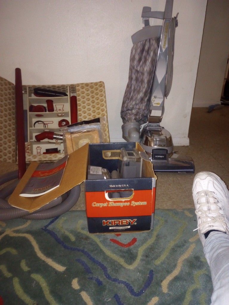 Fantastic Kirby vacuum in great condition clean , works beautifully. Comes with almost all attachments and at least one extra bag Plus the.. ..Centra carpet shampoo system by Kirby. if you always wanted to own a Kirby he has a chance to get a great deal on a great vacuum!