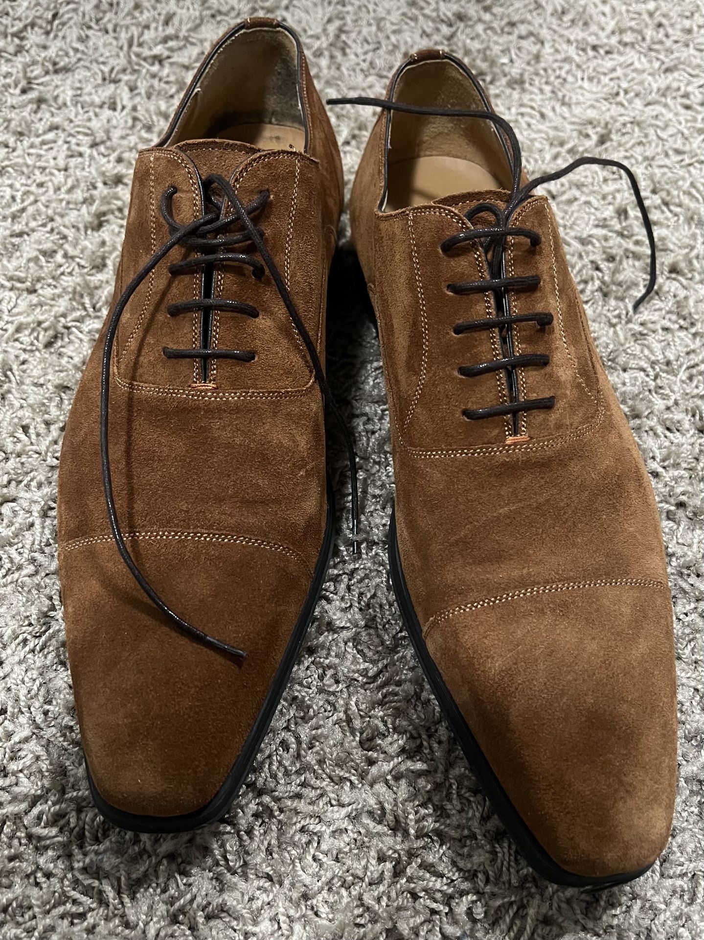 Magnanni Brown Suede Oxford Cap Toe Square Toe Men's Dress Shoes. Size 9 1/2