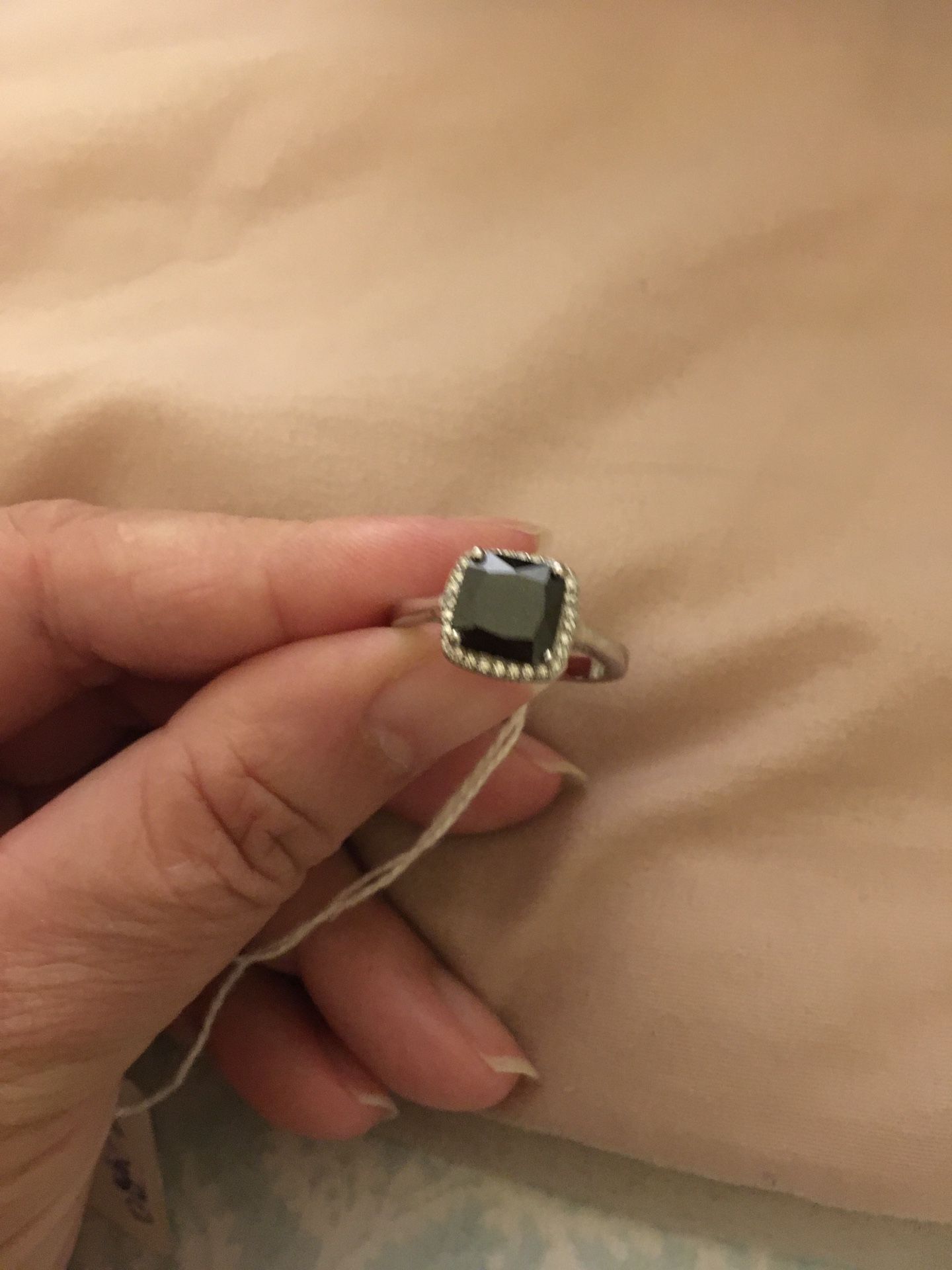 Real 925 Sterling Silver Black Natural Gemstone Ring Size 8