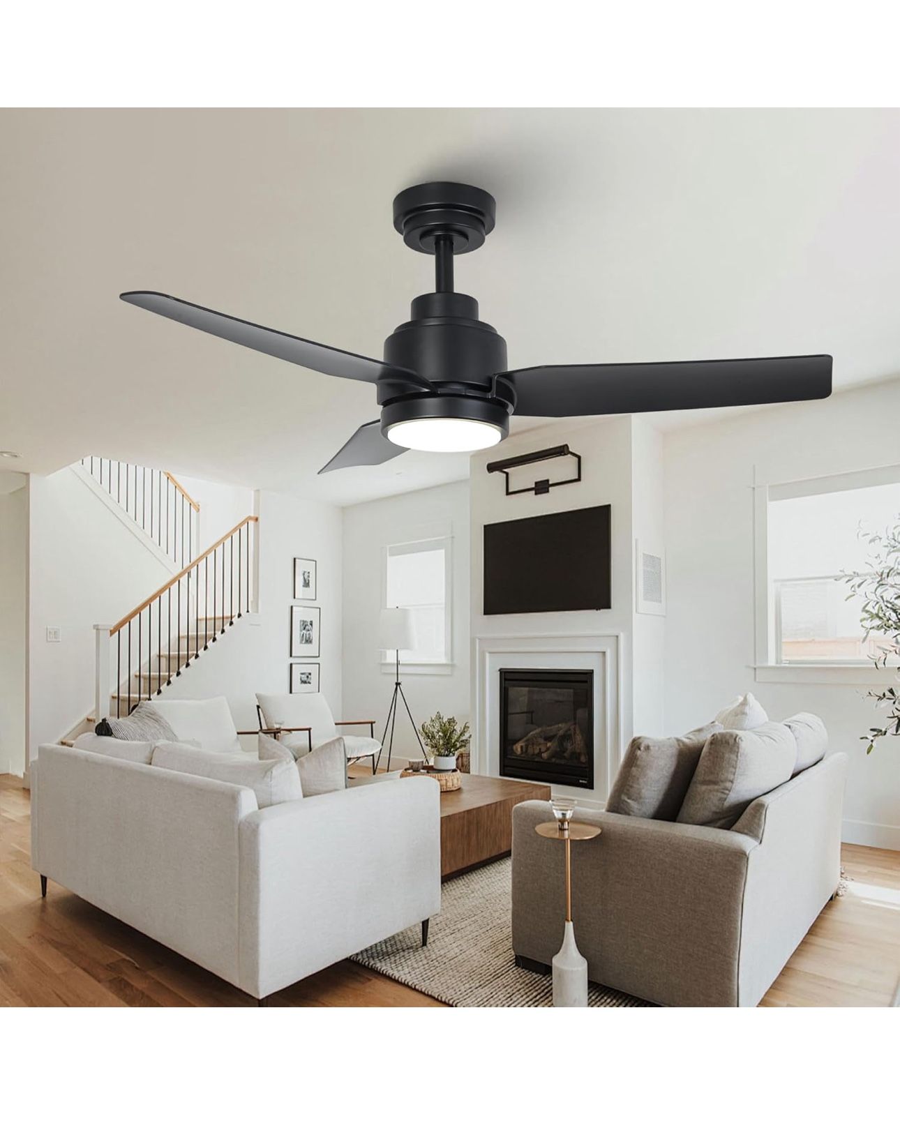 42 Inch Quiet Bedroom Ceiling Fan with Light, Matte Black Low Noise DC Motor, 24W Dimmable LED 3000K/4000K/6500K, 6-Speed Reversible with Remote & APP