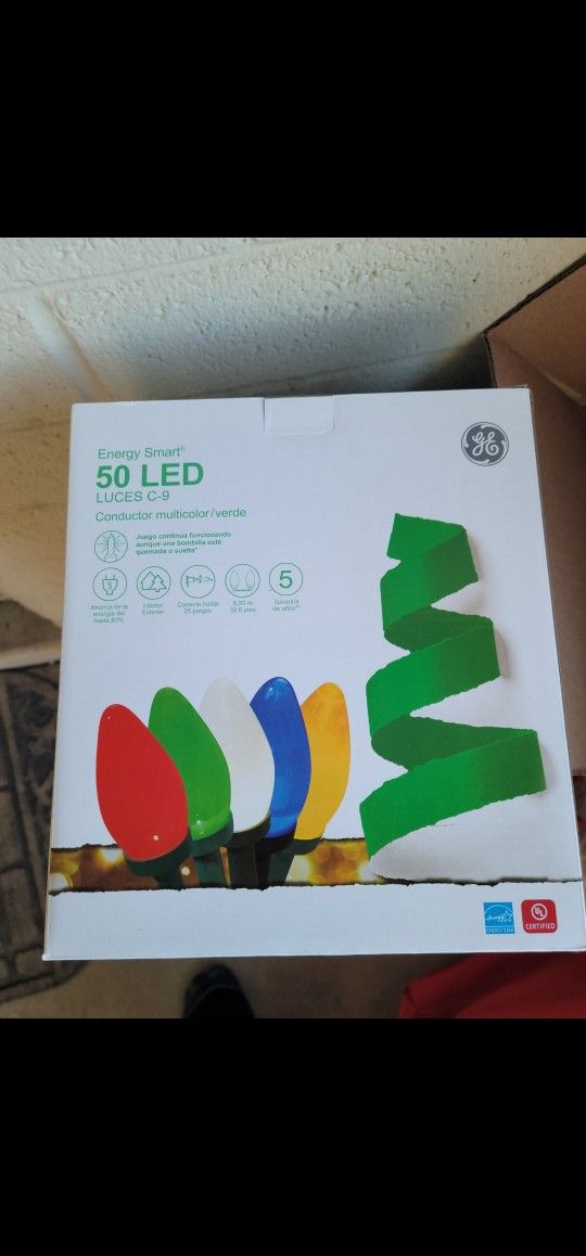 GE Energy Smart Colorite 50-Count Multicolor C9 LED Christmas String Lights New in box. Have multiple boxes $35 a box Christmas roof lights