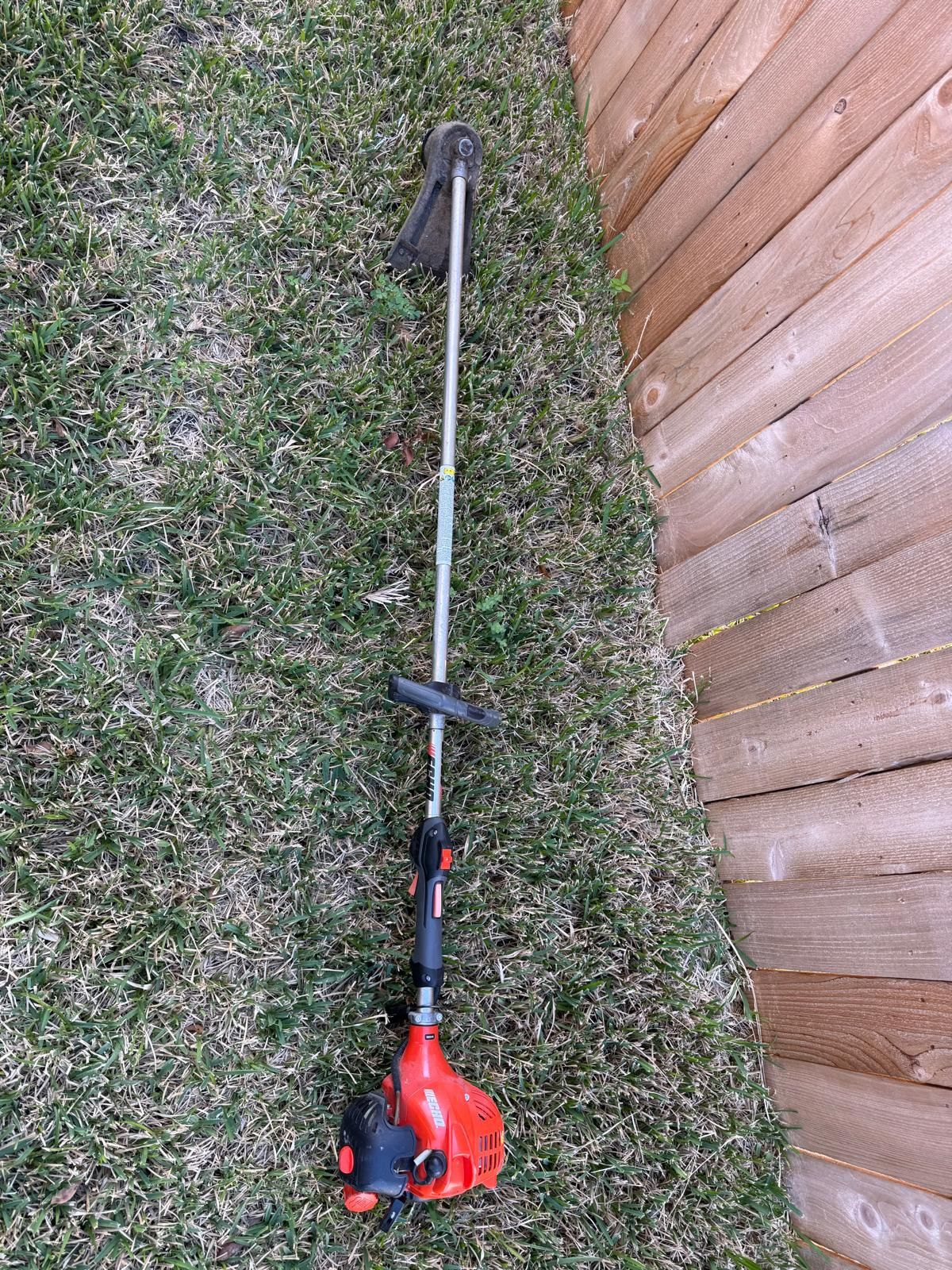 Reliable gas string trimmer in good working condition. Minor cosmetic wear from normal use (see picture) New speed feed head
