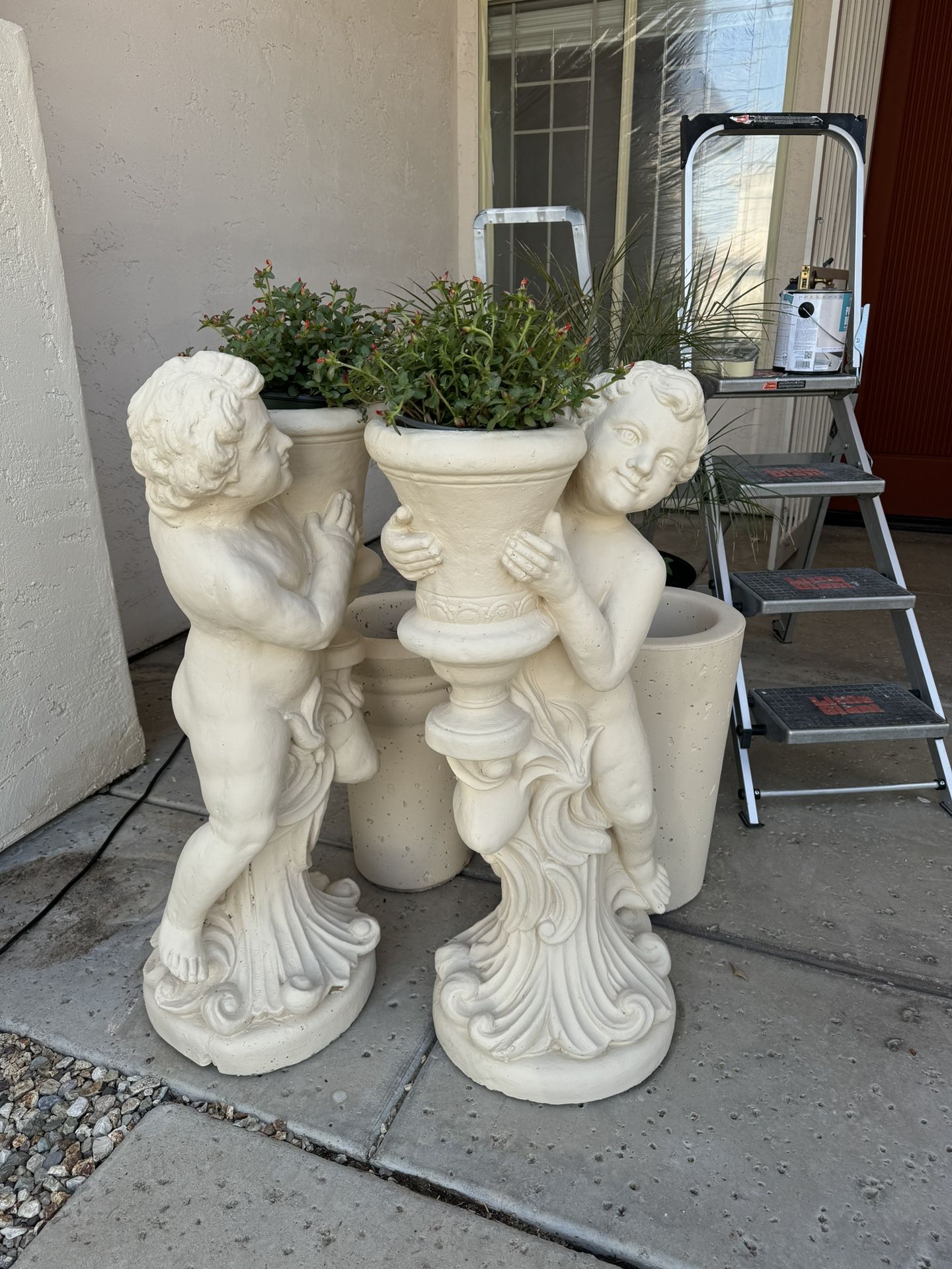 $1600 for both angels (38” tall ) The planters behind the angels are $150 each solid concrete as well Patio pot planter decorative statue
