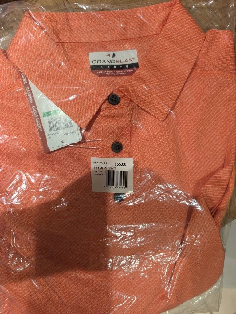 New tags men's Grand slam performance short sleeve polo shirt size large material polyester color orange stripe style number gsks8on8 retail price $55