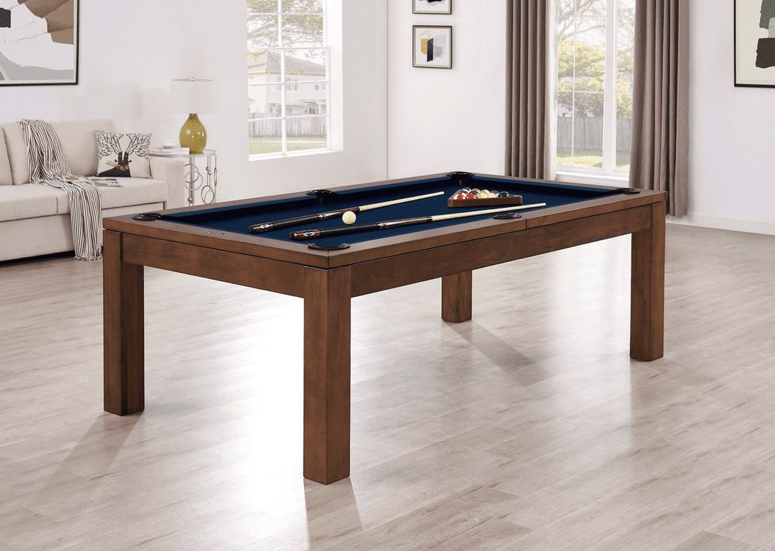 Penelope II 8' Pool Table in Whiskey The Penelope II has the same sleek, clean frame of the first-generation table but with a thinner overall body. This table's post legs, wood frame, and steel support beams provide maximum stability. It also has a slate-leveling system to ensure a consistent playfield. This table also comes with a dining top that can convert the table from a place to play to a place to dine. All Imperial pool tables are skillfully crafted and designed by billiard experts and enthusiasts. Includes new standard cloth, any color Includes playing equipment Simonis professional cloth available Contact us or visit DrBilliards. com Delivery and professional installation available 1321 Ne 163rd st North Miami Beach 33162 Open 7 days by appointment