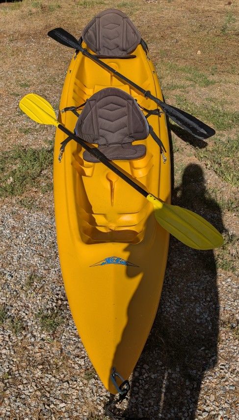 Odyssey 2 person Kayak. 2 paddles & 2 seats & roller wheels for easy loading and unloading. OBO🩵🌊✨