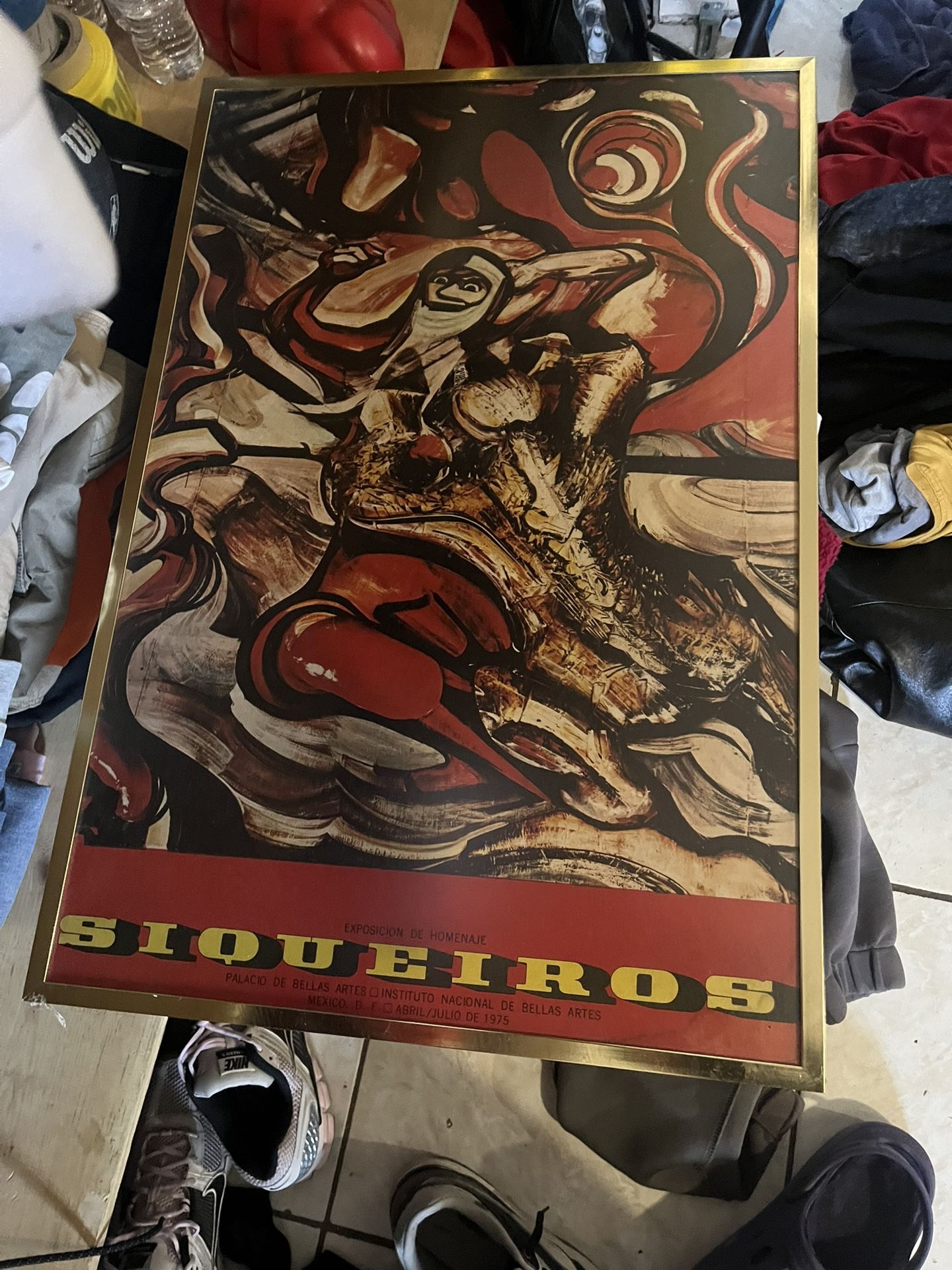 This is an original exhibition poster from 1975 for a tribute exhibition ("Exposición de Homenaje") to the renowned Mexican artist David Alfaro Siqueiros