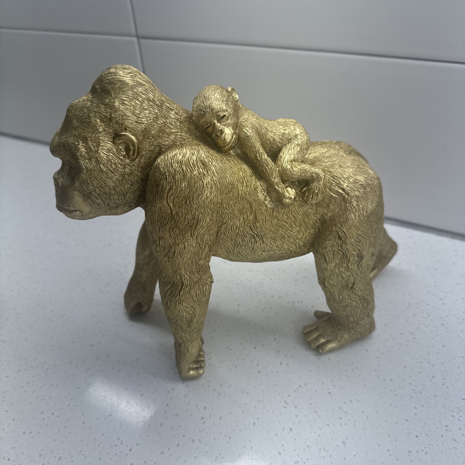 Kingston Living decorative gold gorilla w baby figurine sculpture statue EUC