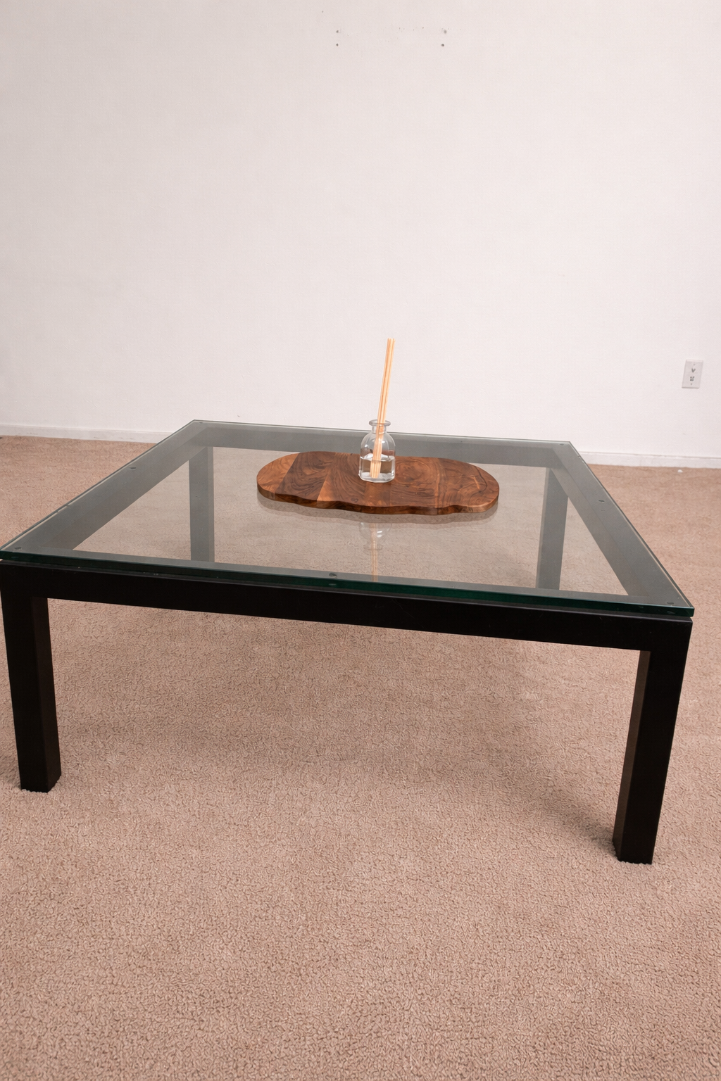 Beautiful glass square Room&Board Parsons coffee table! Originally $500+ In perfect condition 36x36x16d inches Pick up in UTC