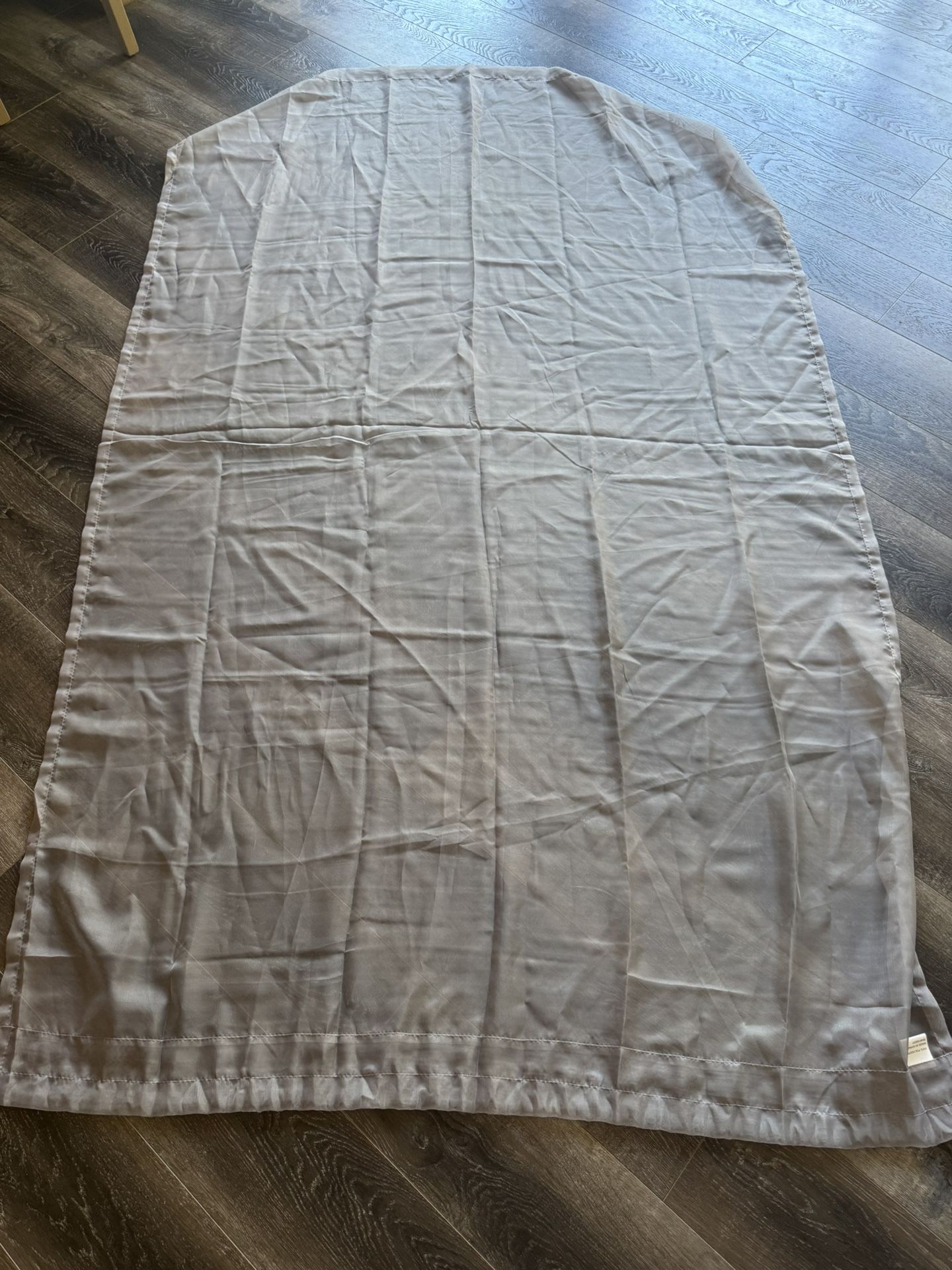these were hung in a guest room. They are a gray/silver color sheer and bright. Ready for any room in your home. ➡️⬅️ 50” and ⬆️⬇️ 84”. I have two sets. If you’re looking for curtain rods I have those two.
