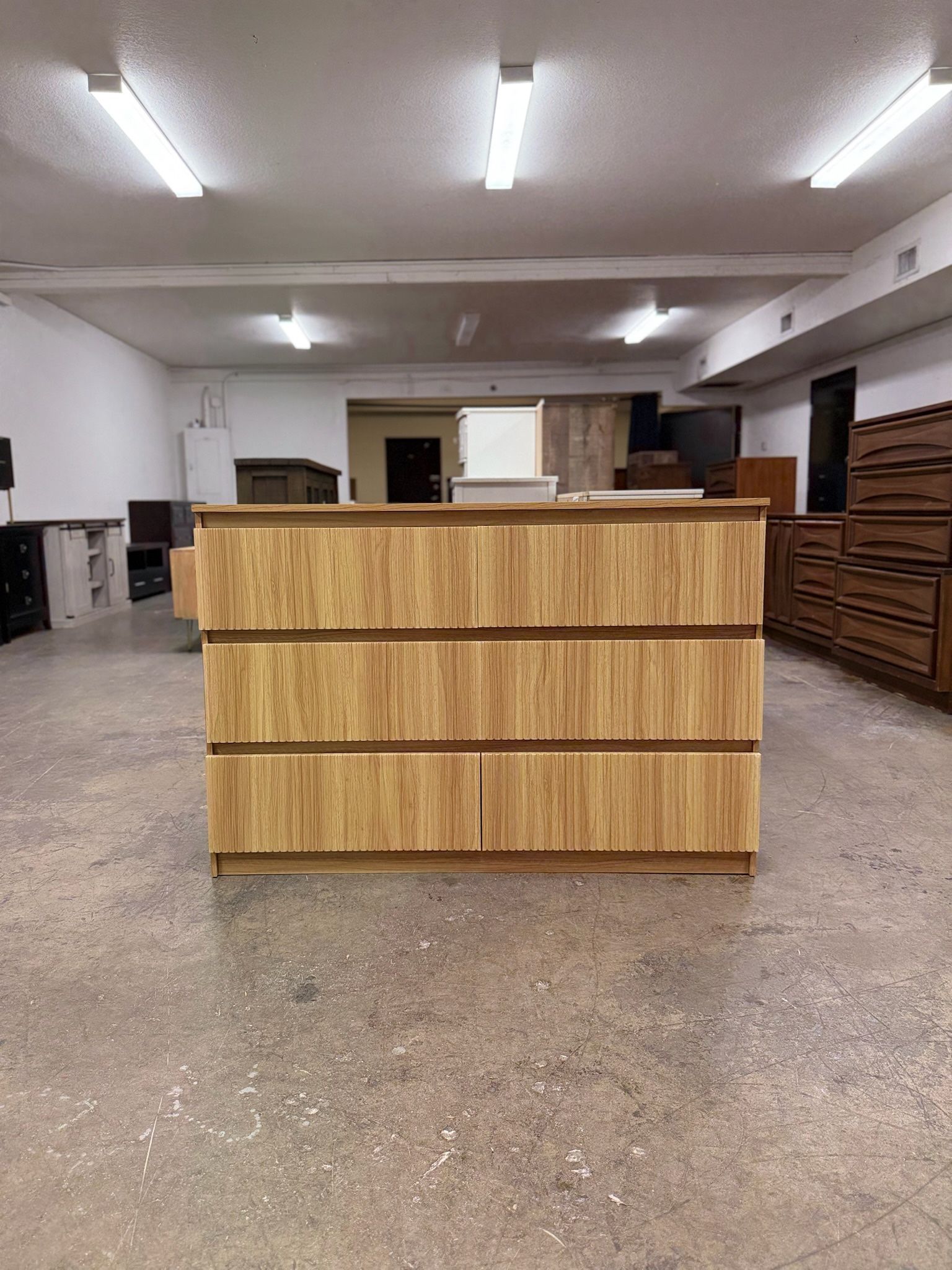 Fluted Light Wood 6 Drawer Dresser