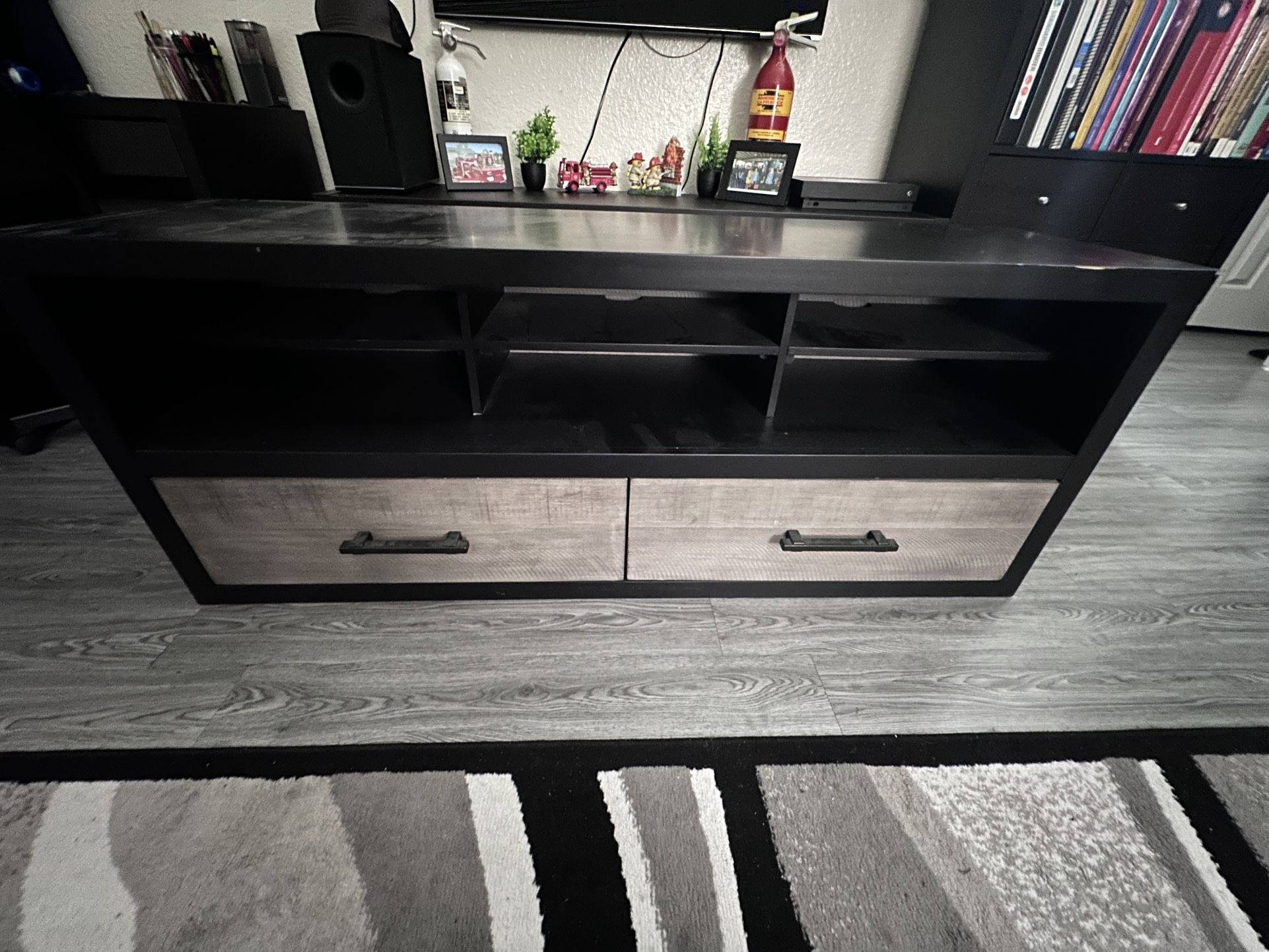 60” TV stand from Bobs Furniture. Bought new 2 years ago. No longer need it. Comes from no smoking house. Still in good condition. Normal wear and tear from use. See pictures for details. Will not deliver and price is firm.