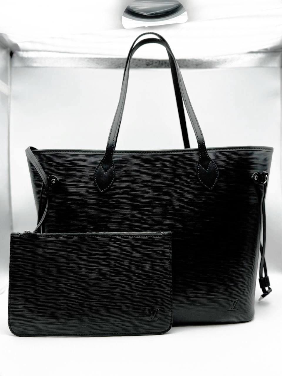 Louis Vuitton Neverfull EPI Black Leather MM Handbag Tote with Pouch