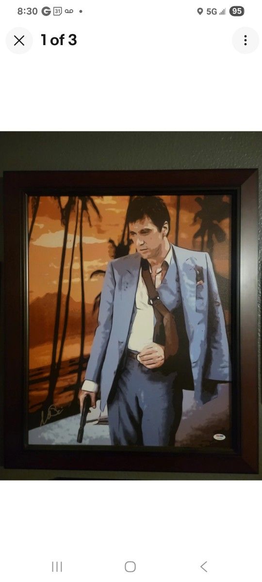 Custom Framed canvas of Al Pacino in SCARFACE Signed and certified by PSA DNA. No flaws and in pristine condition!