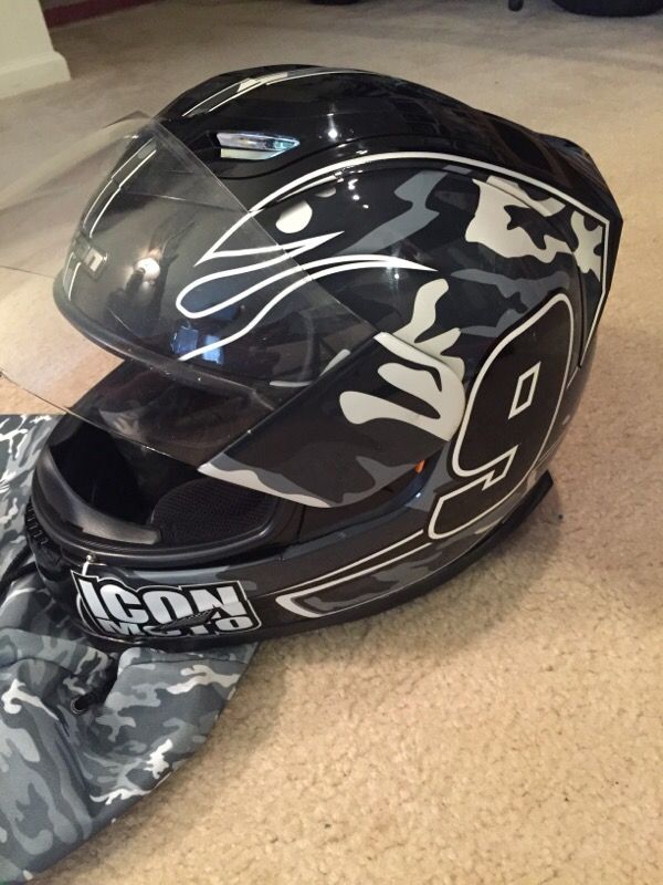 Icon motorcycle helmet used. Comes with a carry bag.$100
