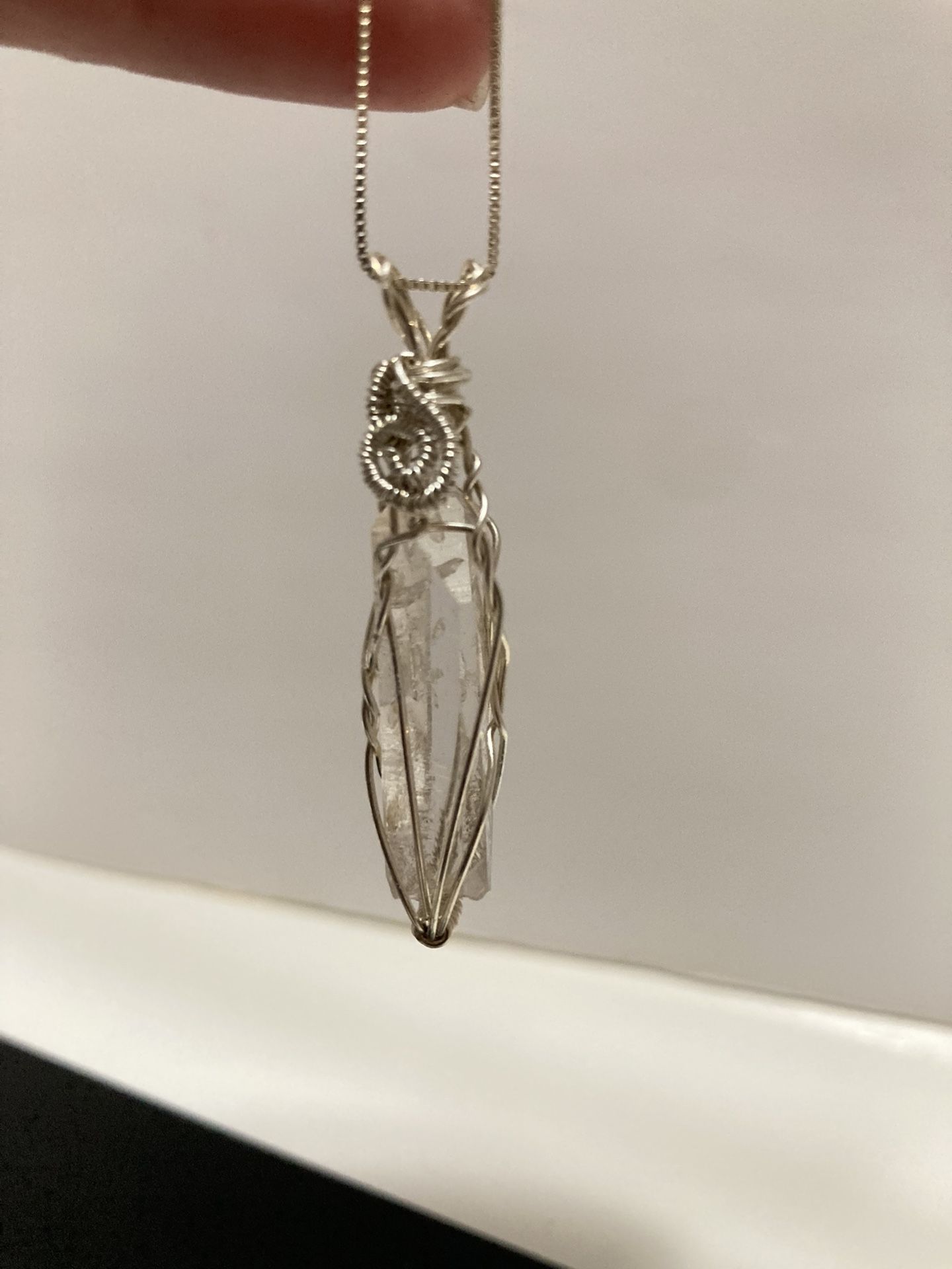 Natural Quartz pendant wire wrapped in sterling with a sterling box chain made in Italy. Chain: 18” Pendant: 1.75” Quartz measures approximately 1.75” One of a kind.