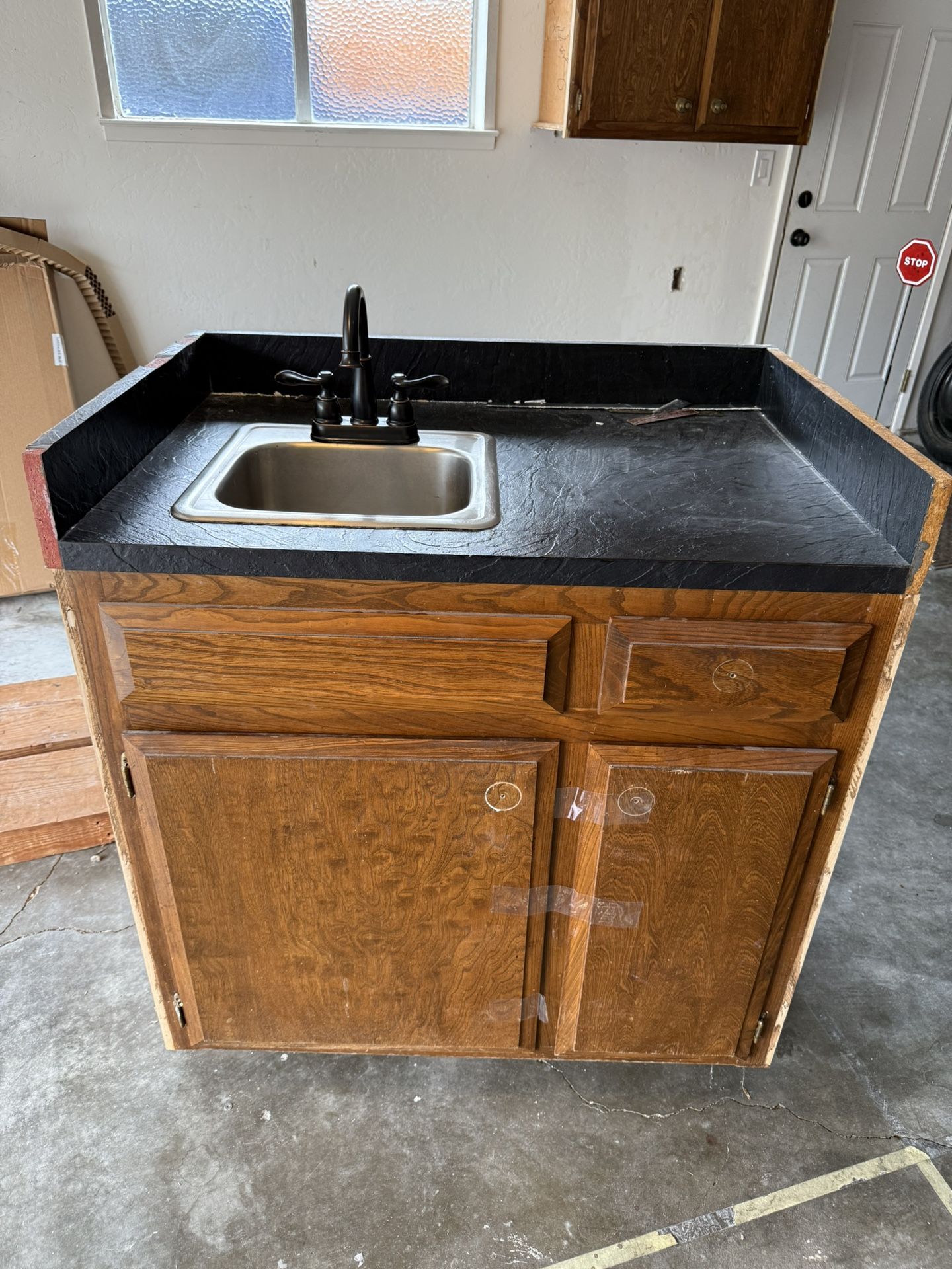 Sink 14”x14” $25 Cabinet 37” w 24” deep. $20
