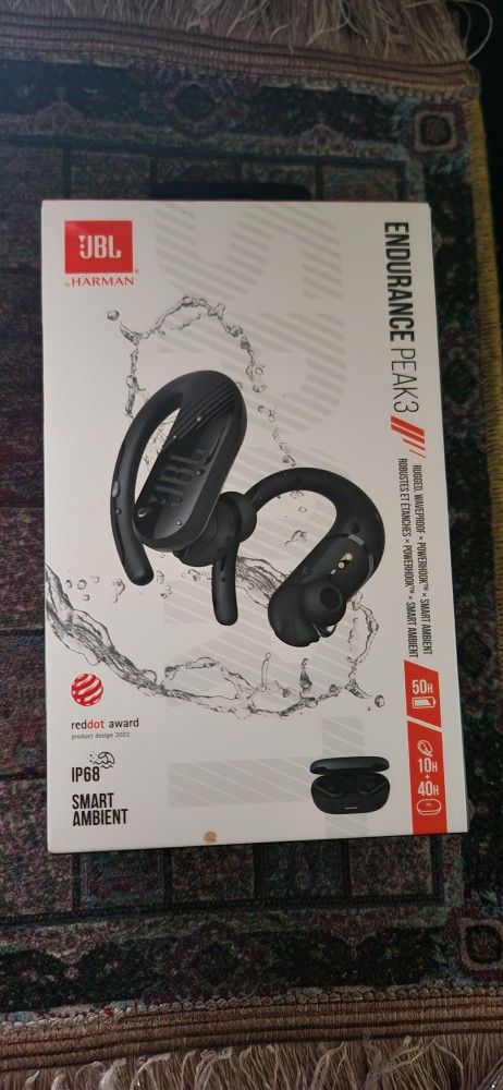 New and Sealed. Gifted to me in December but already have a wireless headsets I like. Plus need cash for food JBL Endurance Peak 3 - Dust and Water Proof (IP68) True Wireless Active Earbuds, JBL Pure Bass Sound, Up to 50 Total Hours of Playback with Speed Charge
