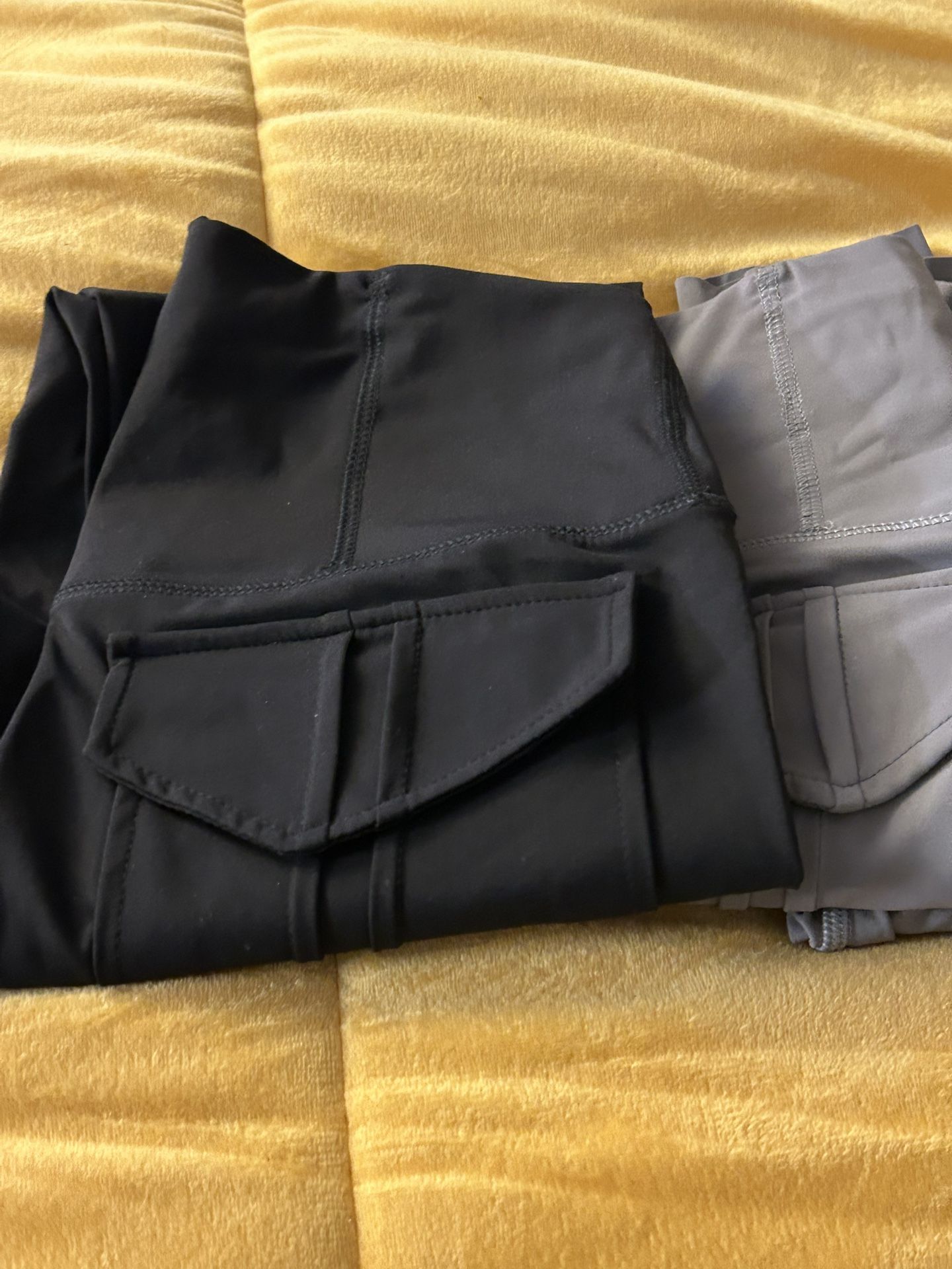 one black two gray leggings. brand new no flaws never worn they didnt fit my daughter they are mediums. they are good quality thick material payed 20 for each. you can take them all for 20. back pockets they are supposed to help with your tummy . you can look at them to see if you like them.
