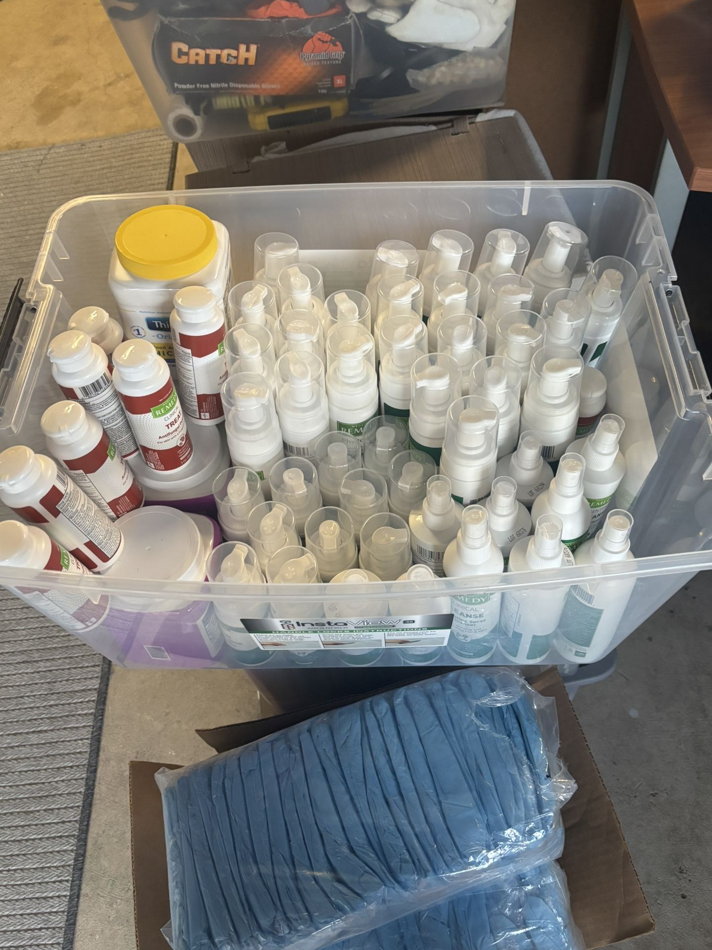 Cleansers, creams,thickeners,anti fungal powder,dry wipes,large pulls and large briefs, under pads , incontinent pads and more.
