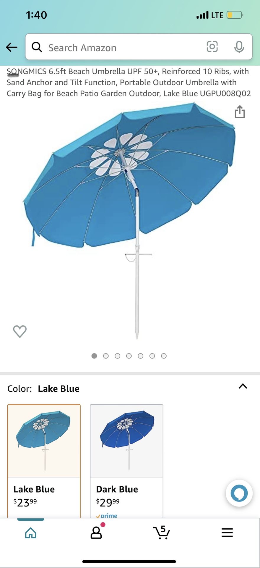 SONGMICS 6.5ft Beach Umbrella UPF 50+, Reinforced 10 Ribs, with Sand Anchor and Tilt Function, Portable Outdoor Umbrella with Carry Bag for Beach Pati
