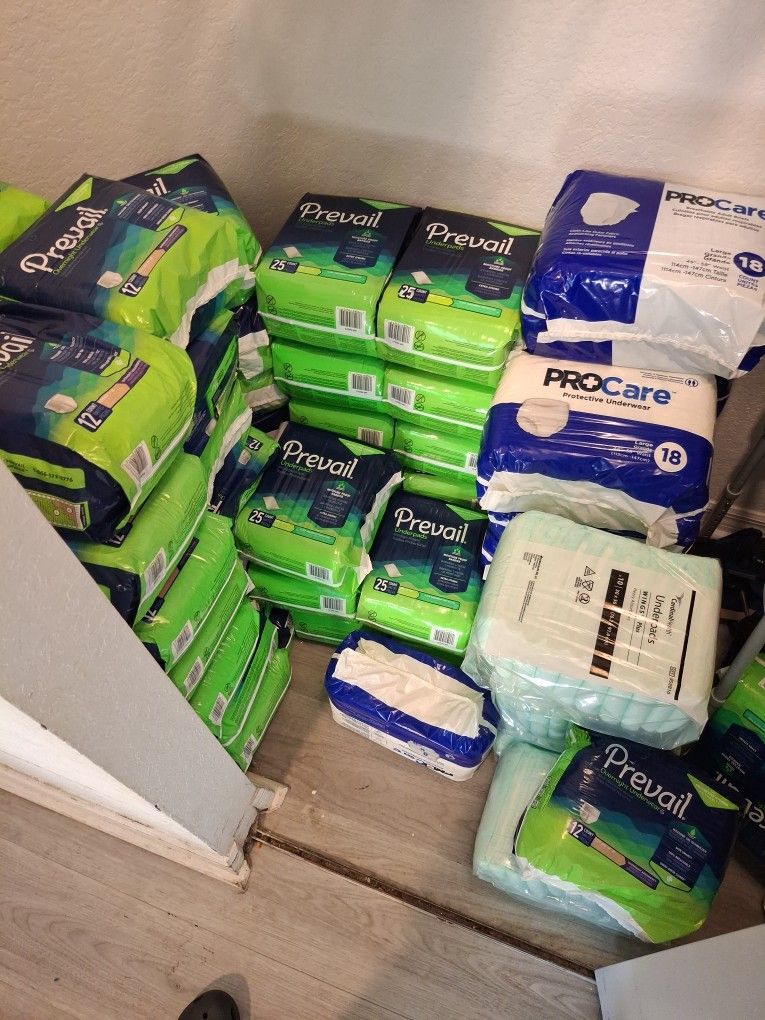 Prevail Underpads- 25CT Large $10.00 each Prevail overnight underwear - 12CT XL $10.00 each ProCare underwear-18CT Large $15.00 each Underpads WINGS Plus- 10CT Large $15.00 each. All medical supplies is in brand new condition.