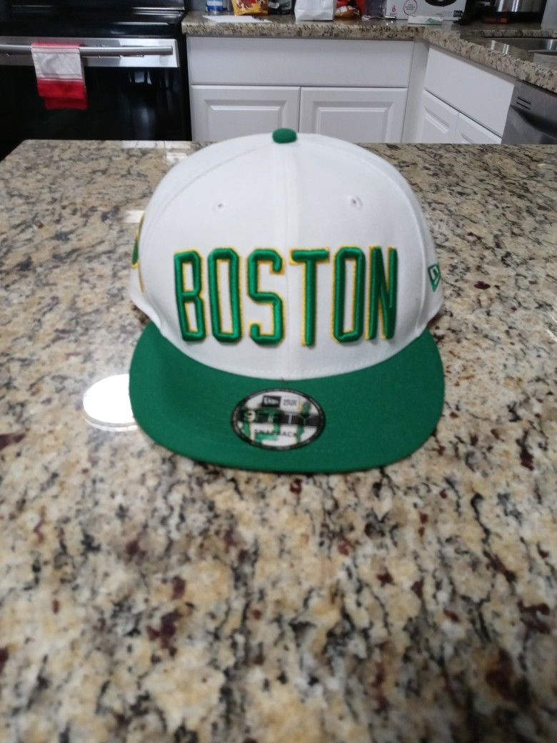 White with green and yellow Boston Celtics new era snapback hat. Retail sticker is $34.99 but you can buy mine for only $22
