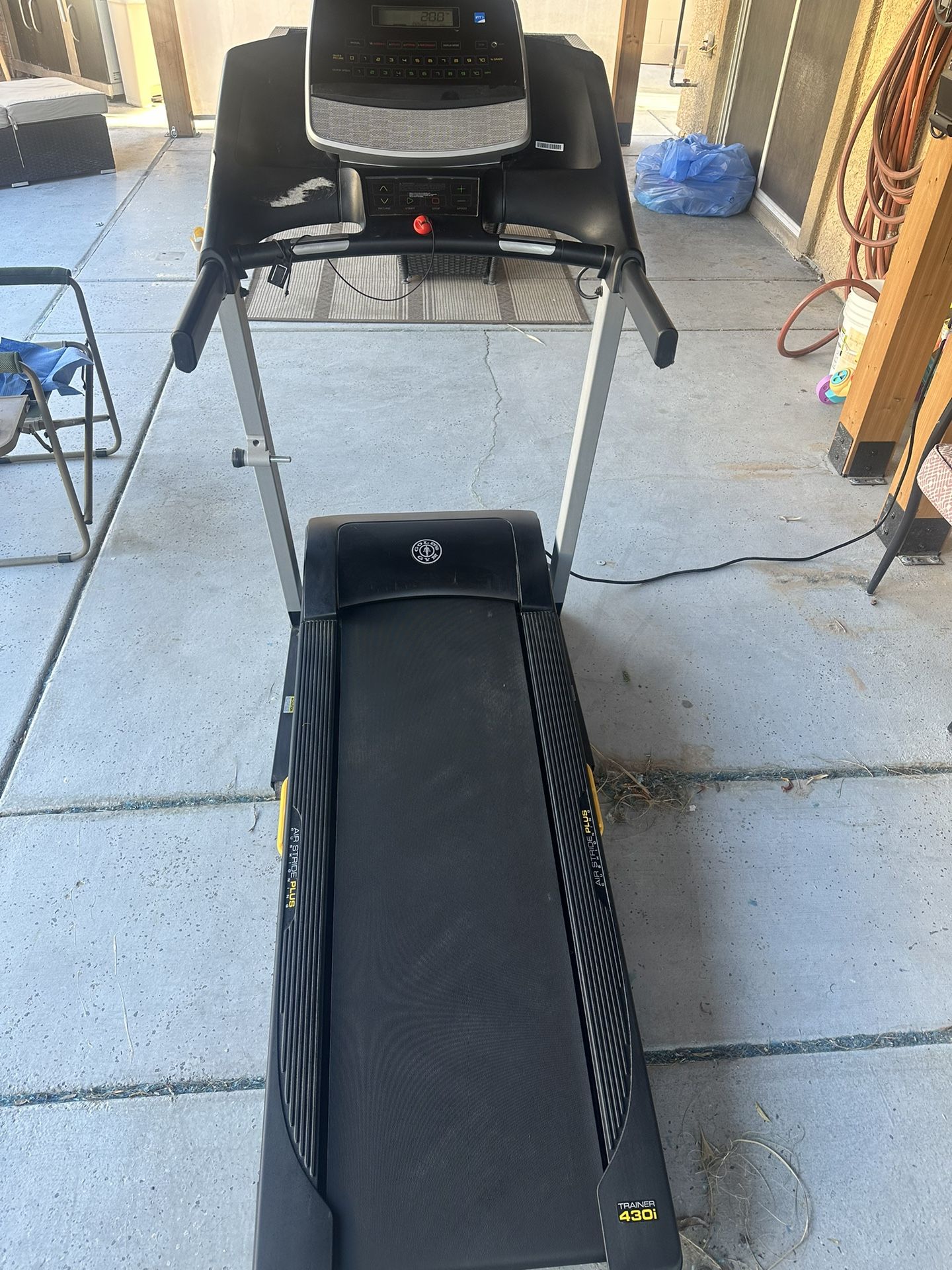 Gold gym treadmill,that almost brand new I used t only few times . Everything working great. It’s just sitting at backyard .If you wanna do your cardio at home this is ur machine no issue at all.
