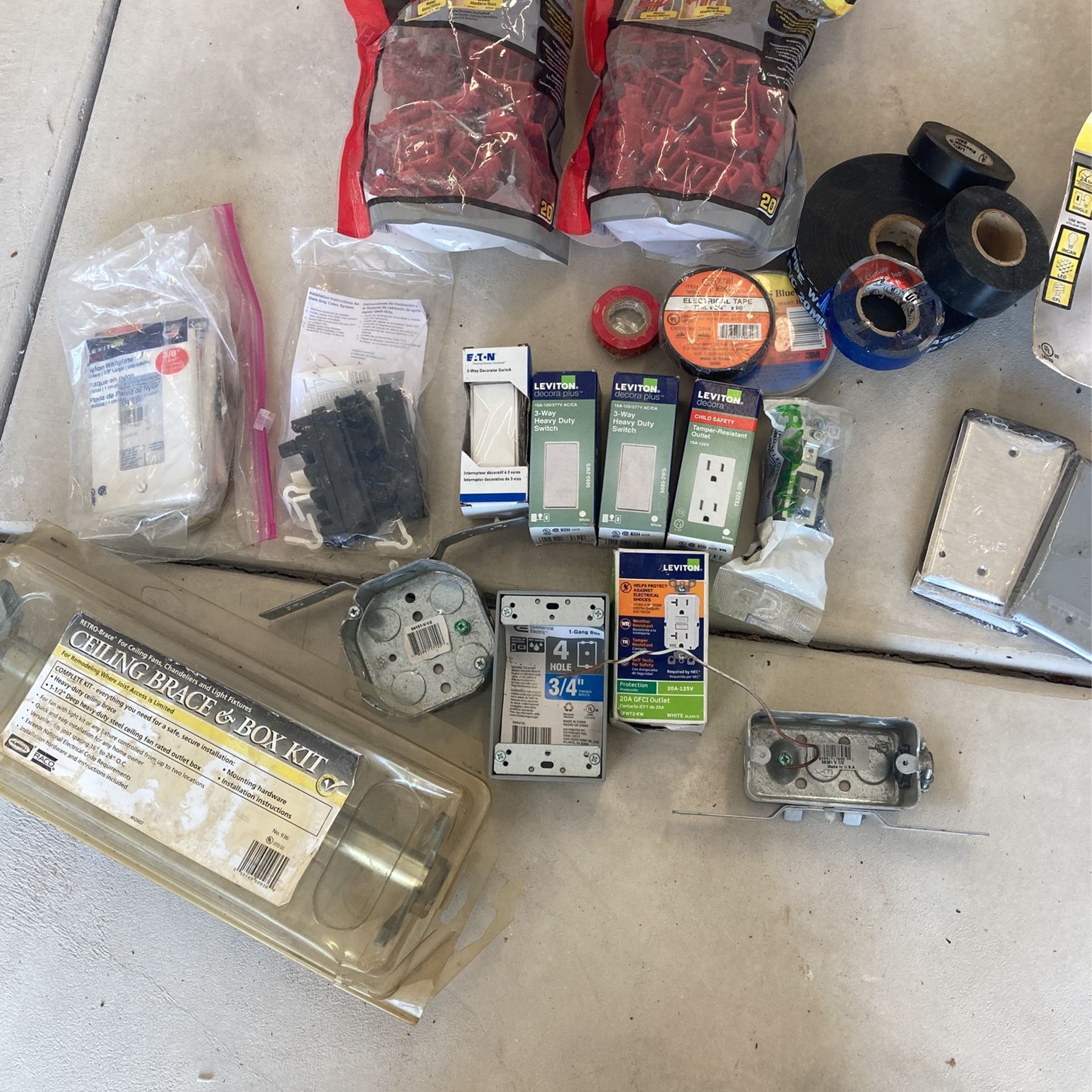 Electricians, I have some new items still in packaging never opened. Switches, gang box, tape, indoor timer, multi cable staples, and a ceiling brace box kit.