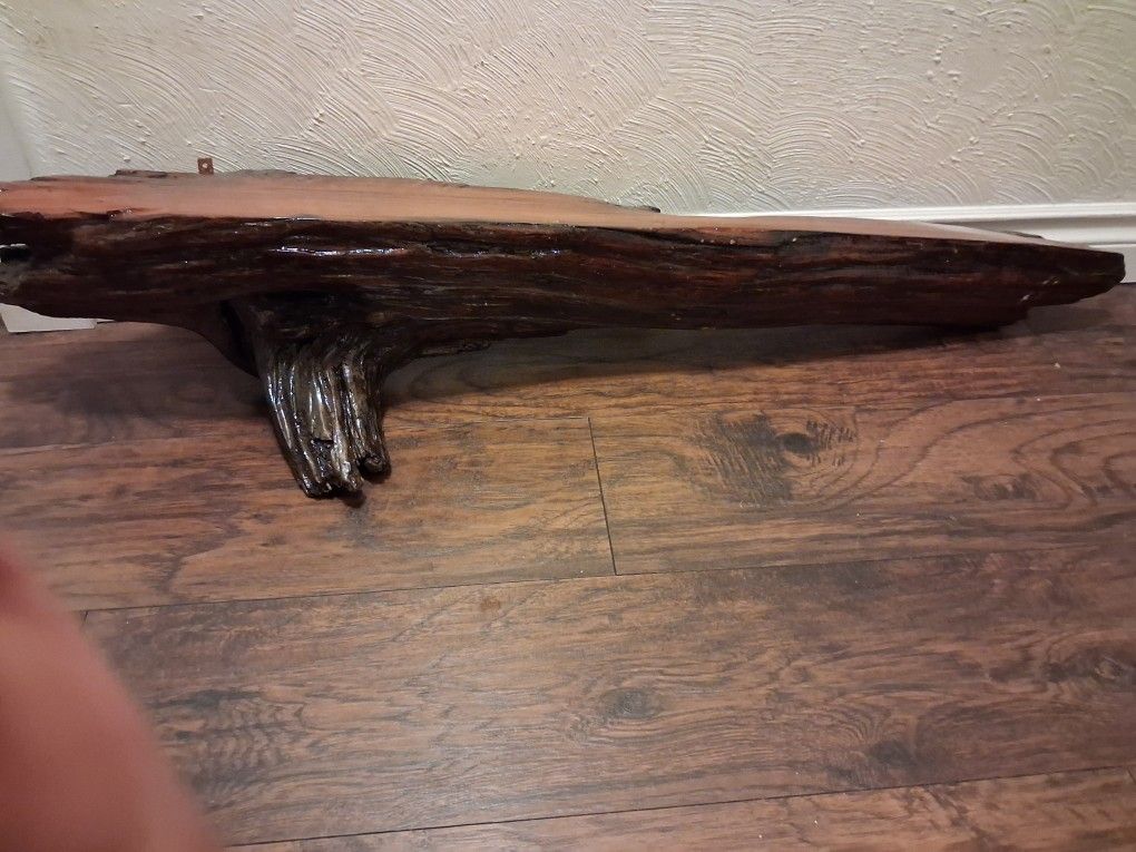 Beautiful cedar Shelf its about 4 foot long 8 inches wide at widest point it would look amazing on any wall in your home