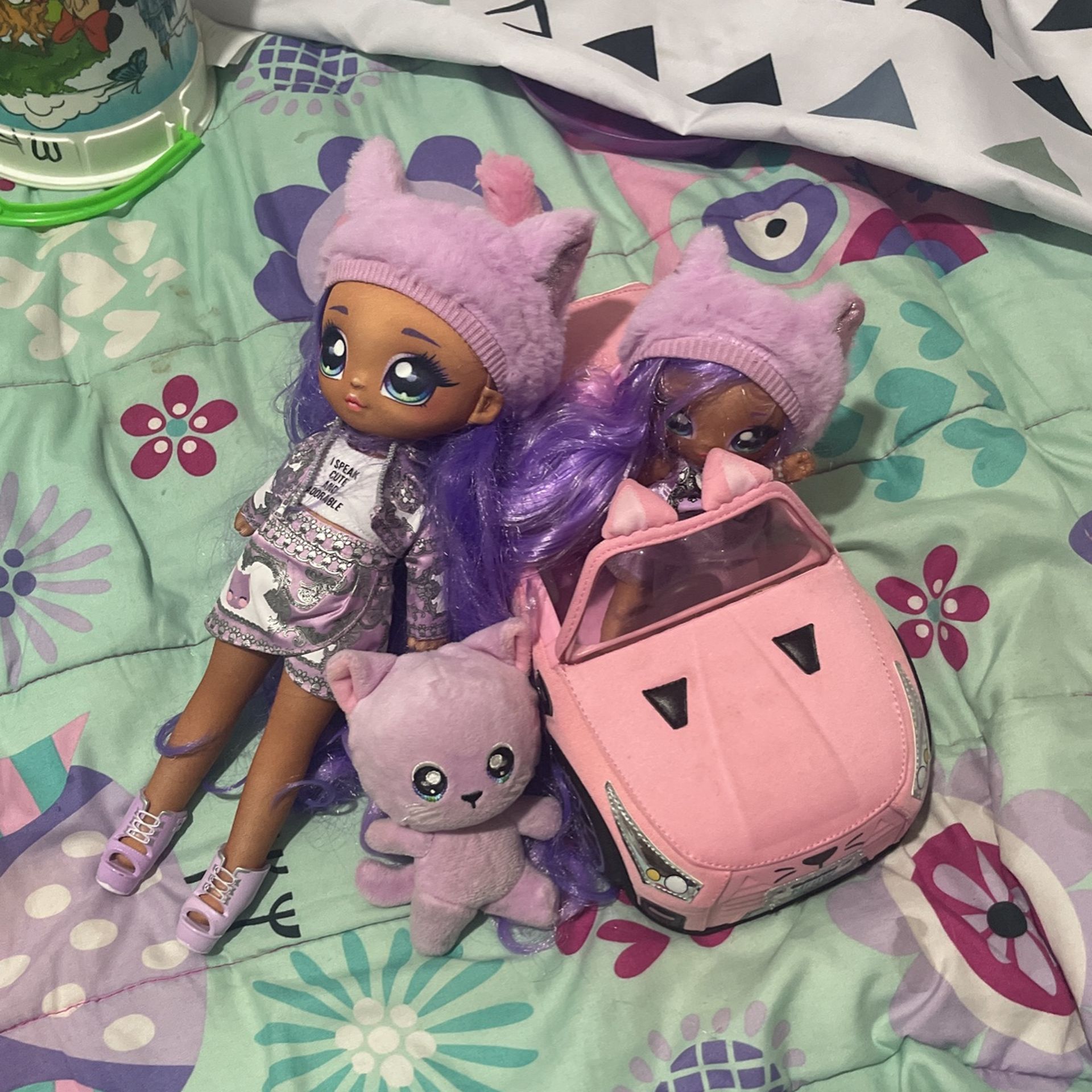 Very good condition dolls, pet and car set
