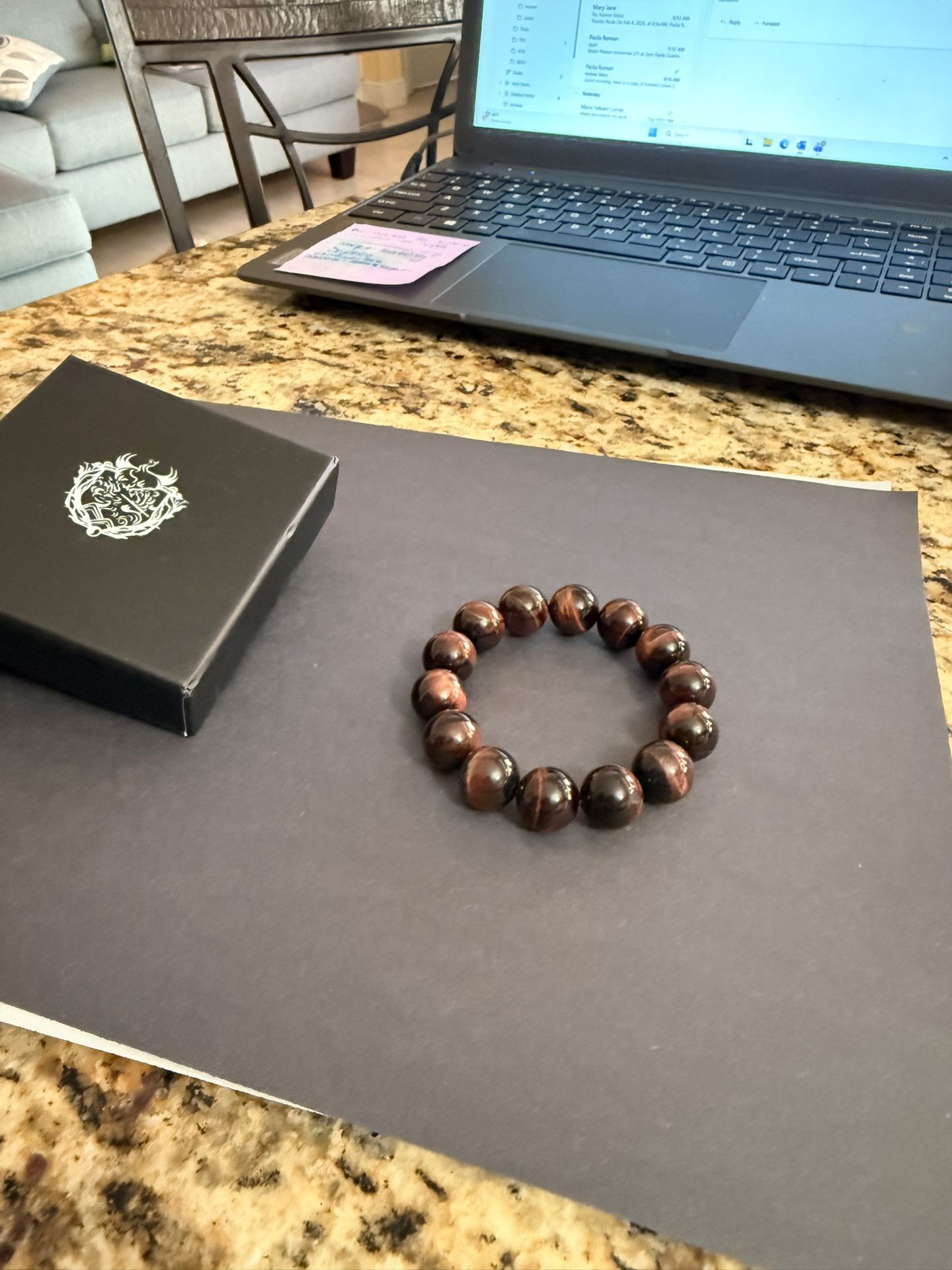 Large beautiful Natural stone “Red Tiger’s Eye” bracelet. About 7-8 inches 10-12 mm (Guessing)