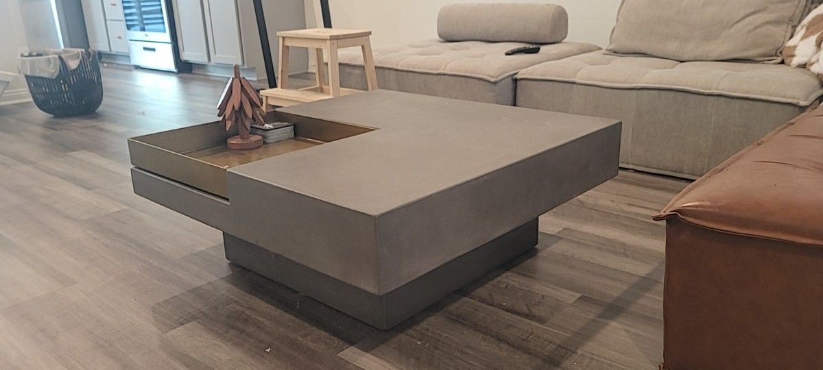 Gold and gray concrete coffee table Some scratches Must have 2 people carry