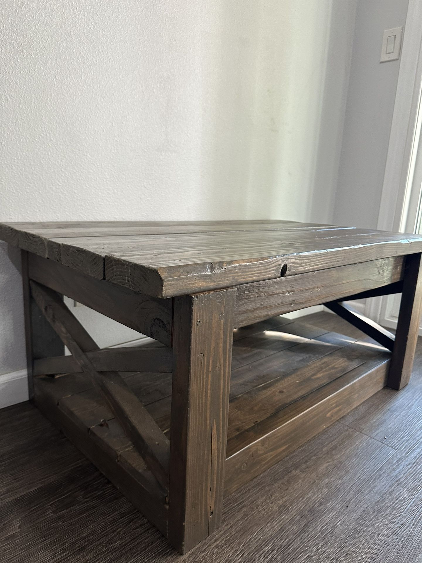 Rustic Handmade Coffee Table ** Solid Wood** ** Sturdy** Dimensions. H: 18/12 In D: 24 1/4 In W: 41 In