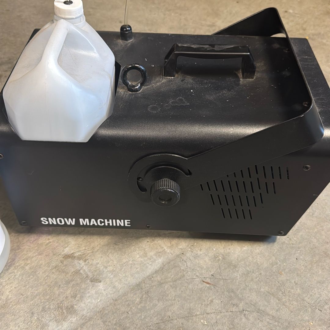 Used snow machine makes a lot of snow! Works on DMX and with a remote. Model: SM250. This is a professional machine.