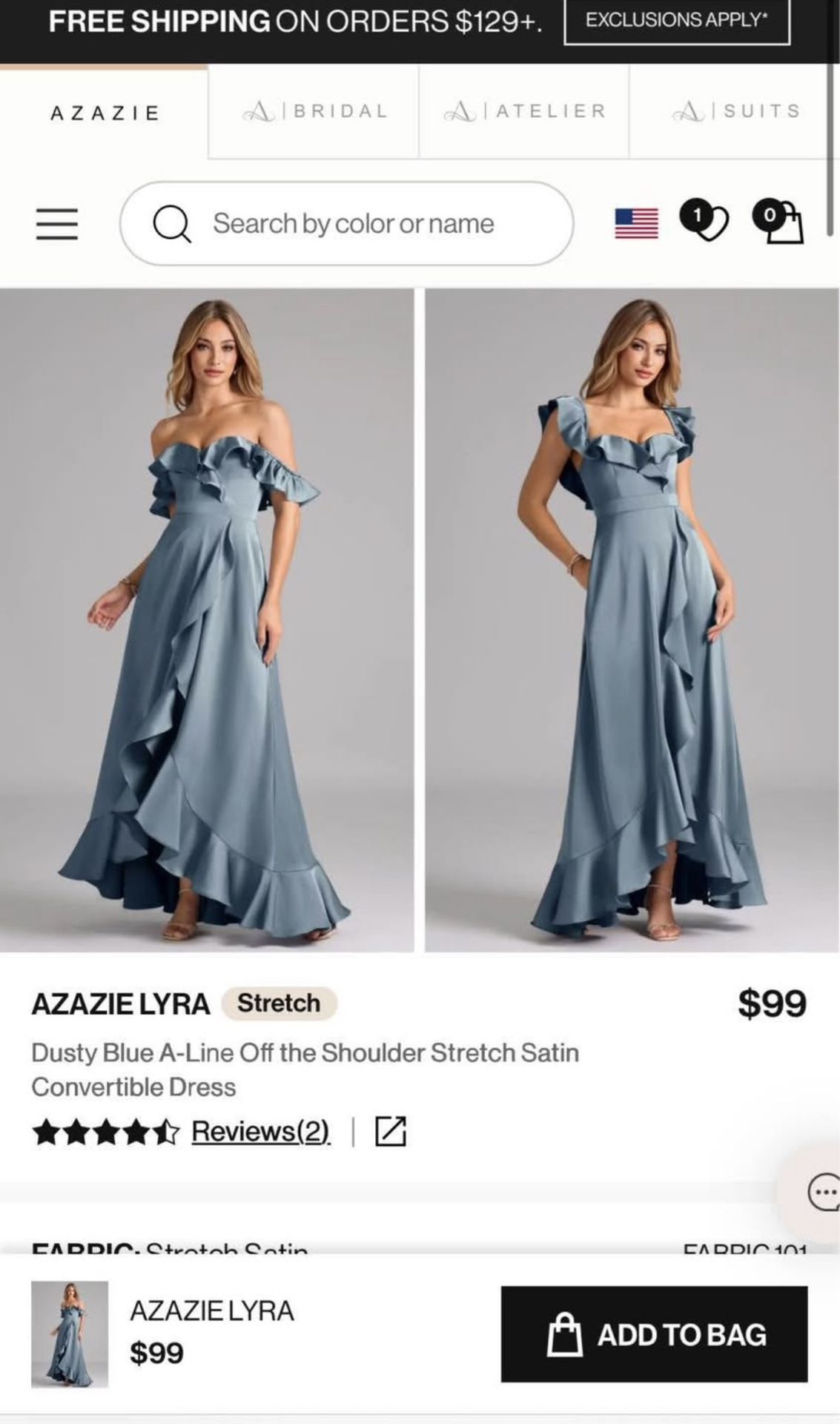BRAND NEW Azazie Lyra bridesmaid dress, color dusty blue, fabric satin stretch, custom size. Bought the wrong material. Measurements of dress: Bust: 35 in Waist: 31.5 in Hips: 42.5 in Hollow to floor: 52 in Height bare foot: 64 in Extra length: 1 in My size for reference: SM-M US size 4-6 Height: 5’4 Pickup location: 77069