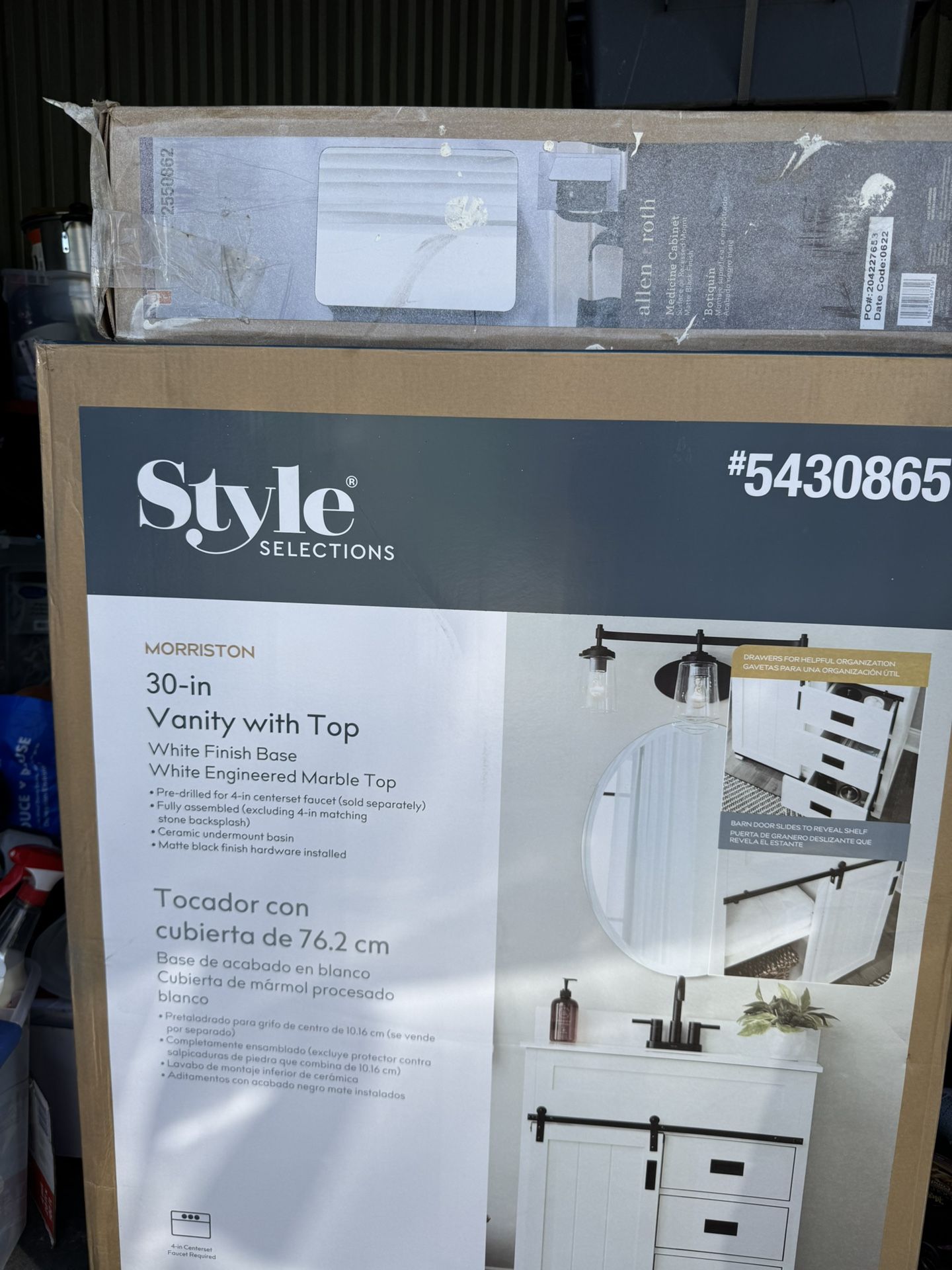 Morristown 30-inch Vanity with Marble Top brand new Allen Roth Medicina Cabinet mirror brand new