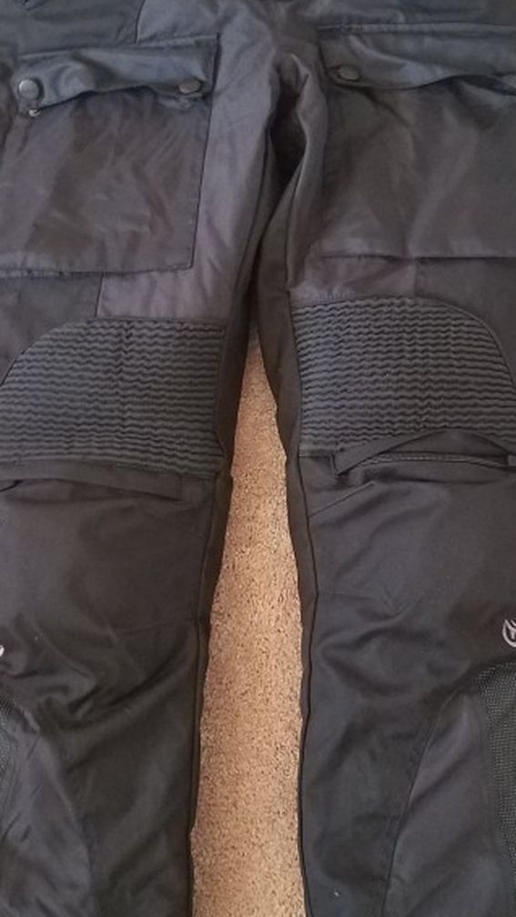 Lightly worn motorcycle pants in excellent condition with inside liner and knee pads that are removal. No scuffs, no marks and no holes. Size 32 waist and 32 inseam.