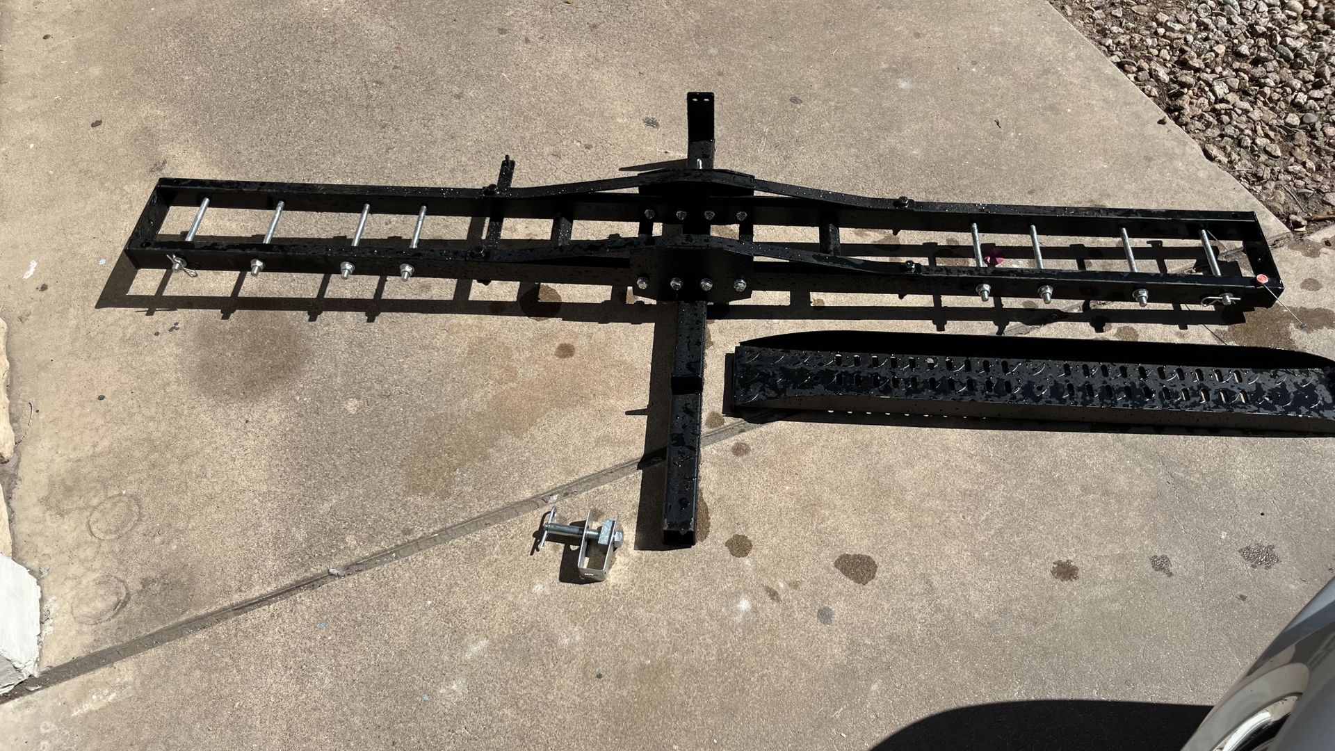 Installs into standard receiver with a 650 pound capacity. Just roll it up the ramp and tie it down . I had someone ask if they could tow a trailer ?$&&@ please don’t be that person! Great for all bikes under 650 pounds. Honda Suzuki Yamaha Kawasaki Husqvarna Gas Gas