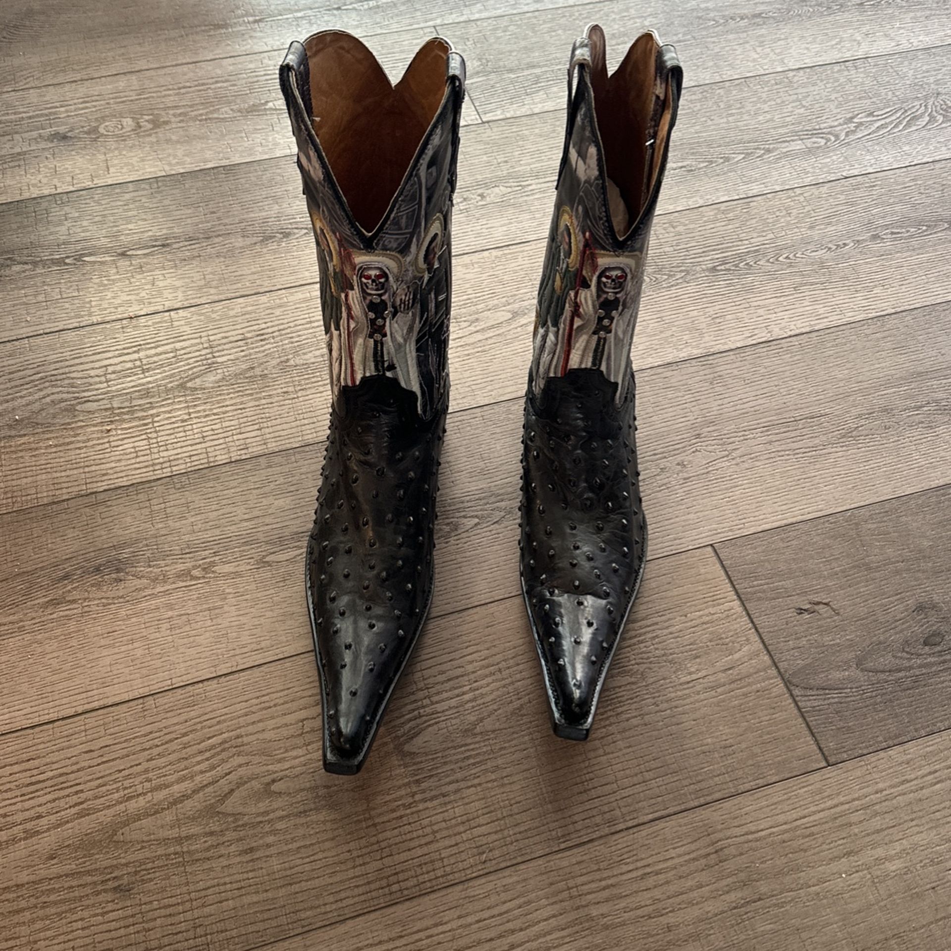 El General Black Boots Size 8.5 Avestruz Ostrich